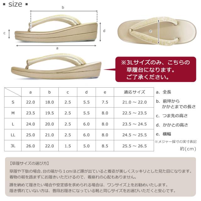 セットの草履には、S〜3Lと幅広いサイズをご用意いたしました。