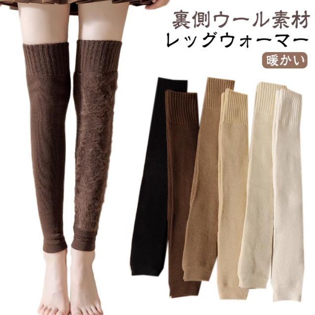 ひざ保温 内側ウール レッグウォーマー 暖かい 保温 ニット 内側ウール ロング レッグウォーマー ニーハイ 裏起毛 ゴルフレッグウォーマー 冷え対策 もこもこ ロングカバー ひざカバー 膝カバー 靴下 レッグウォーマー ぽかぽか オーバーニー 防寒 秋用 冬用