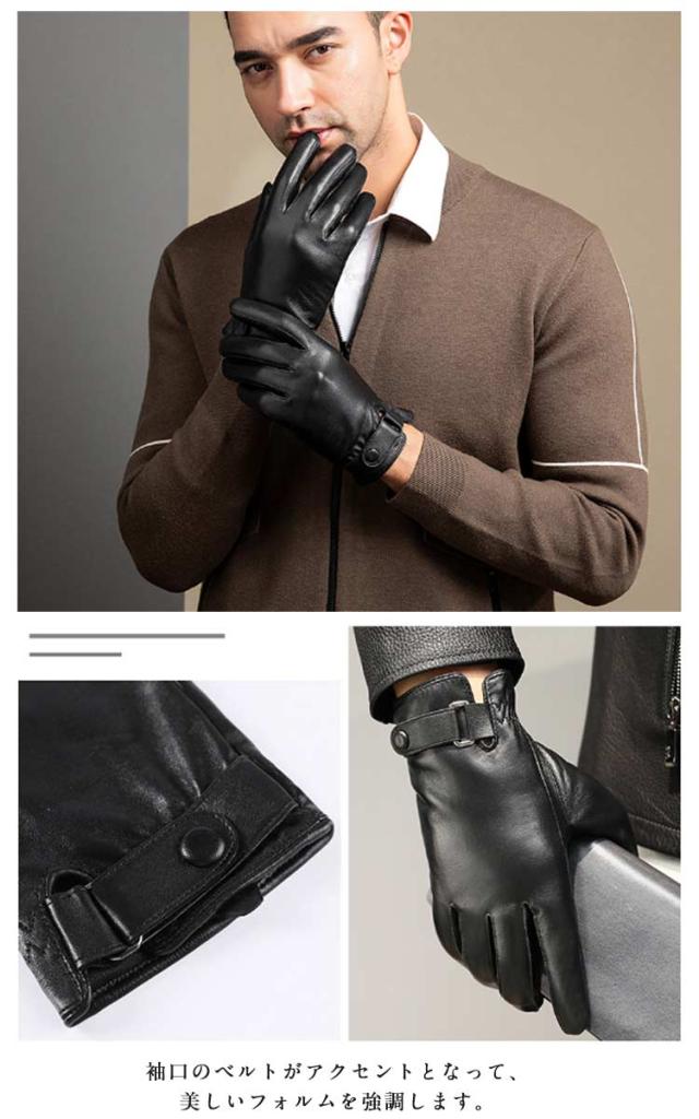 | 選べる裏起毛あり/裏起毛なし2タイプ!柔らか手触りと上質な質感のラム革手袋 ラム革を使用しており、上質な手触り保湿性に優れています。 なめらかな裏起毛でソフトな肌触りが指先まで暖かく包んでくれます。 袖口のベルトがアクセントとなって、美しいフォルムを強調します。 スマホ対応部分が指先だけでなく指全体なので、とても使いやすいです。 クラシカルなデザインとシルエットなのでカジュアルにもビジネスにも使いやすいアイテムです。 選べる2タイプ、ニーズに合わせてお選びいただけるのもうれしい♪ | |