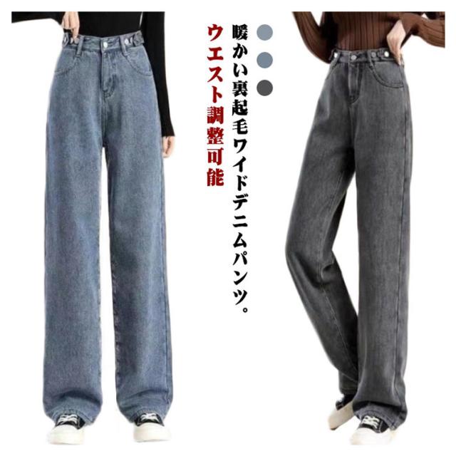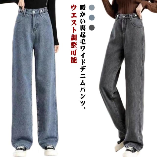 あったかデニム 秋冬 裏起毛 ワイドパンツ パンツ レディース 裏起毛 パンツ ウエスト調整可能 デニムパンツ 裏起毛なし デニム ジーンズ ロングパンツ 大きいサイズ 防寒 オフィス
