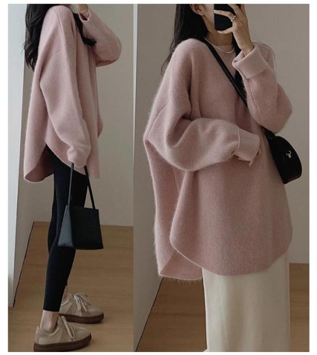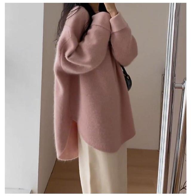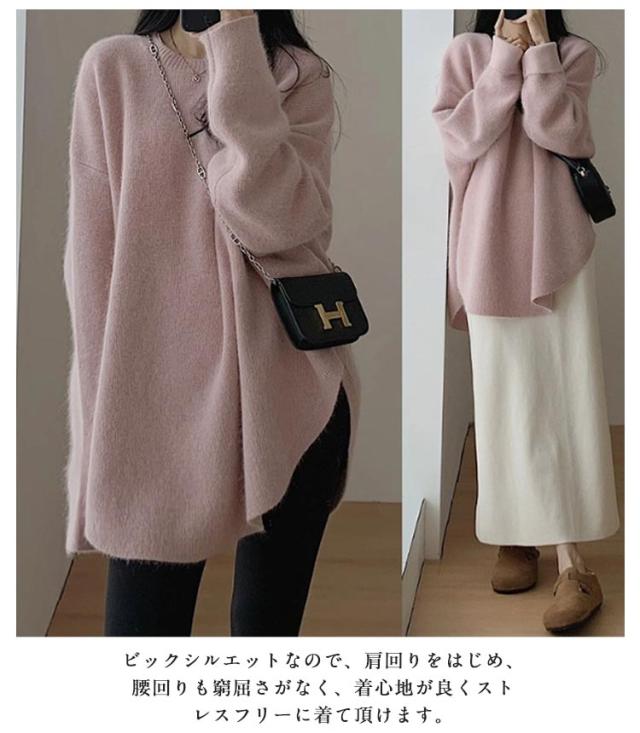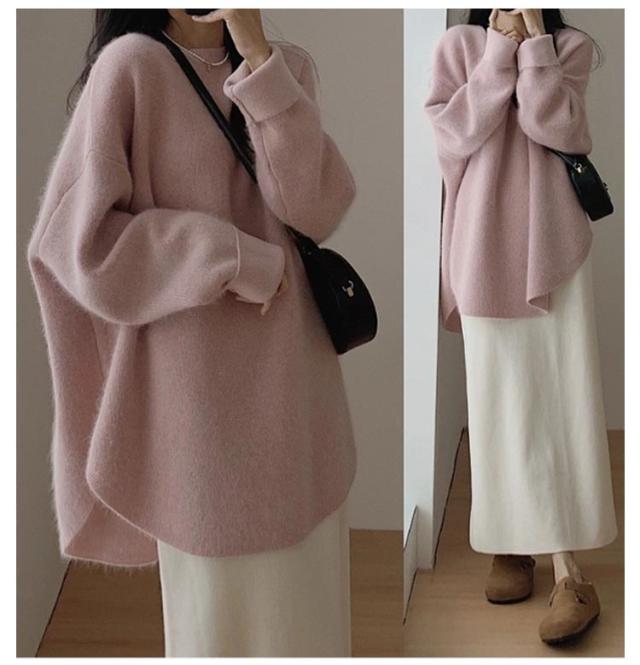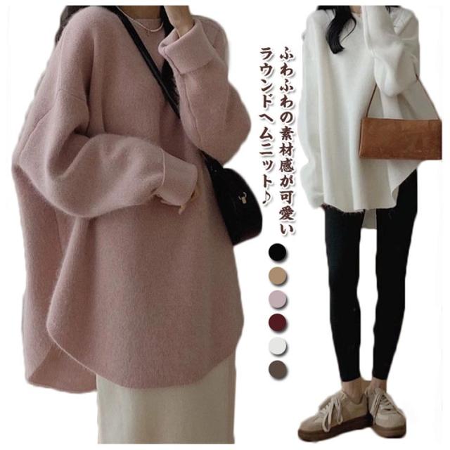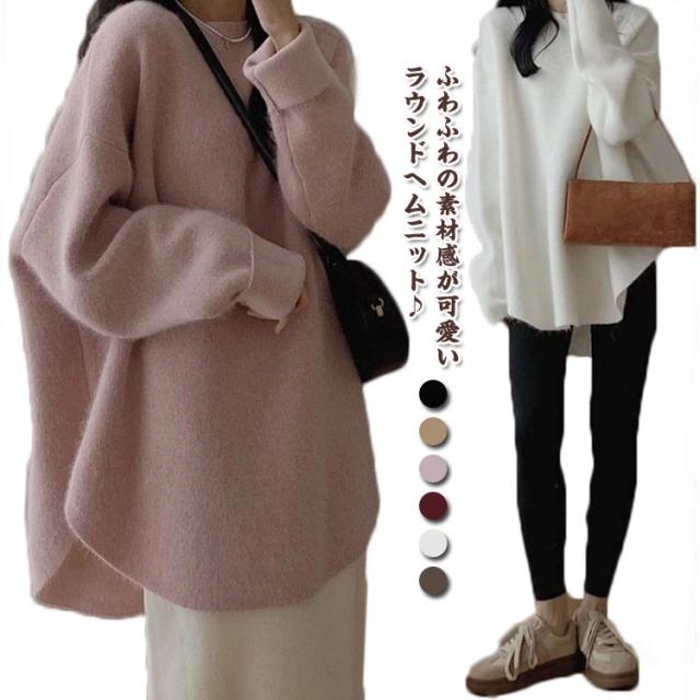 ラウンドヘム プルオーバー レディース セーター ニット トップス クルーネック 長袖セーター 秋 冬 ラウンドヘム おしゃれ 体型カバー ゆったり カジュアル 可愛い