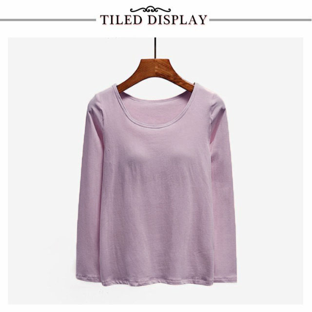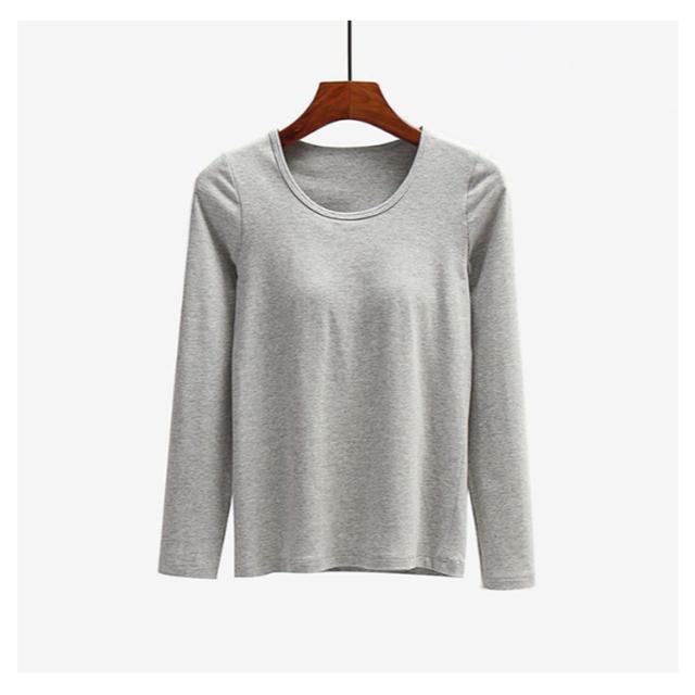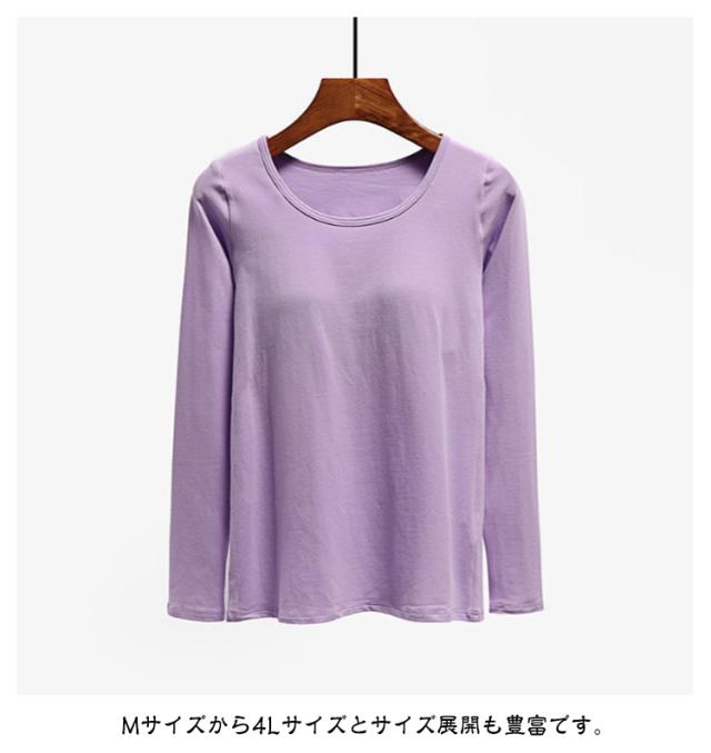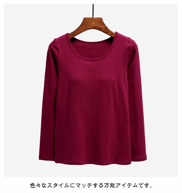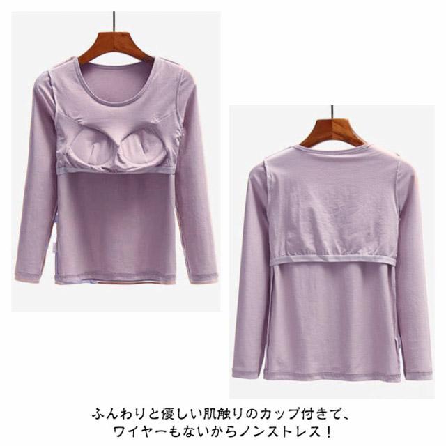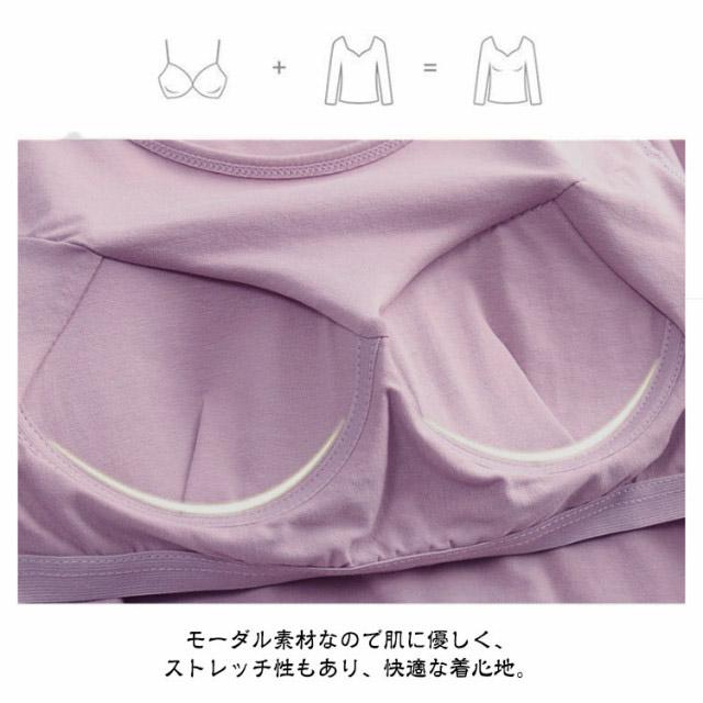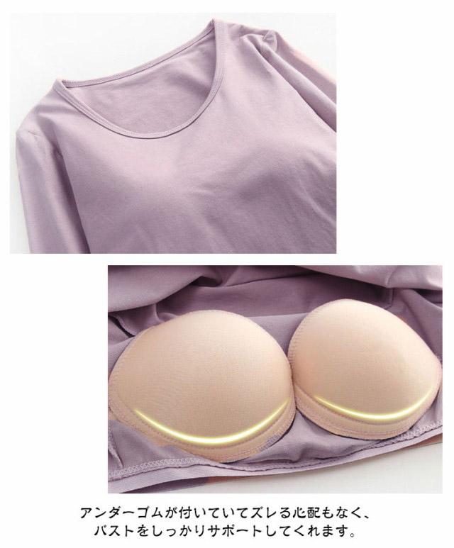 カップ付き 長袖 Tシャツ Uネック トップス レディース カップ付きインナー 下着 ブラトップ パッド付 長袖インナー カップ付きカットソー ストレッチ 伸縮性 通気性 締め付けない 肌着 ルームウエア 部屋着 無地 シンプル 春秋 送料無料