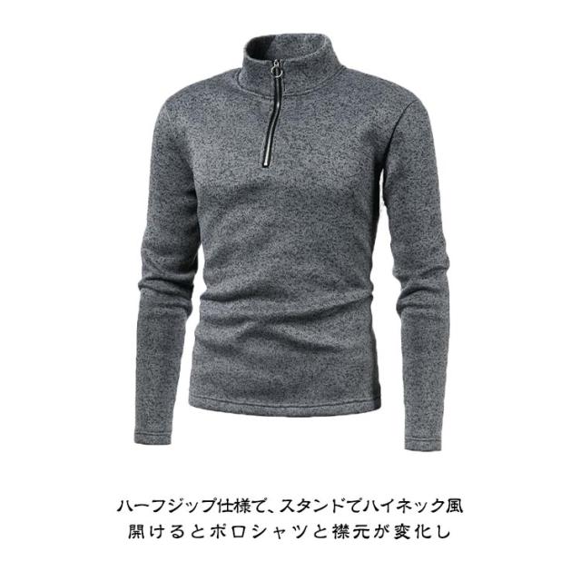 | S-4XL!これから冬のカジュアルからスポーツまでどんなコーデには欠かせない。おしゃれなメンズ長袖パーカーが登場しました! ハーフジップ仕様で、スタンドでハイネック風、開けるとポロシャツと襟元が変化し、 お洒落着から日焼け対策、冷房対策、そしてスポーツと、万能に着まわせます。 シンプルな無地デザインで上品な印象を与えてくれるメンズポロシャツ、一枚だけで男性魅力を演出します! 父の日、敬老の日のギフトにも最適な長袖ポロシャツです。 首元は防寒・防風性のあるハイネックスタイルを仕様で気温が下がっても暖かさをキープできる。 | |