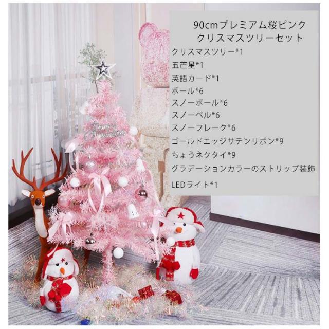 90cm ライト付 オーナメントセット 簡単組立 音楽付きライト LED クリスマスツリー ミュージックライト クリスマス セット ツリー 脚カバー ledライト ライト オーナメント 飾り スカート 足元 クリスマスツリー 電飾 ピンク イルミネーション スリム ギフト 北欧 プレゼント