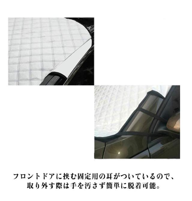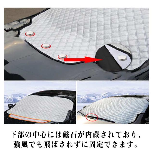フロントガラスカバー サンシェード 車用 凍結防止カバー シート 挟み耳付き 内蔵磁石 雪対策 遮光 中綿入り 難燃 フロントカバー 日除け 日よけ 撥水 紫外線防止 汎用 軽自動車 普通車 冬 夏 四季兼用