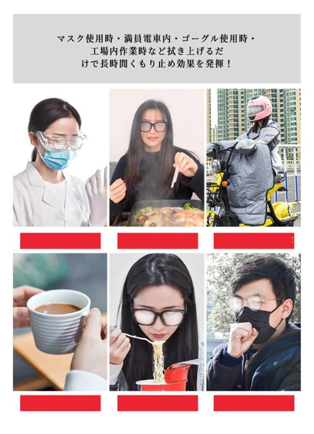 | ・拭くだけで繰り返し使えるくもり止め、メガネクロス3枚セット! ・メガネ拭きと曇り止めの機能が付いたマイクロファイバーのクリーニングクロス。 ・1枚で約300回分メガネ拭きに使用ができる。 ・マスク使用時・満員電車内・ゴーグル使用時・工場内作業時など拭き上げるだけで長時間くもり止め効果を発揮! ・メガネの他にも、スマートフォン、タブレット、パソコン画面、カメラレンズ、サングラス、鏡、ゴーグルなどにも使用可能です。 ※注意事項 ・くもり止めクリーナーを洗濯したり、水に浸したりしないでください。 ・使用の後、必ずジッパーバックに入れて密封して保管してください。 | |