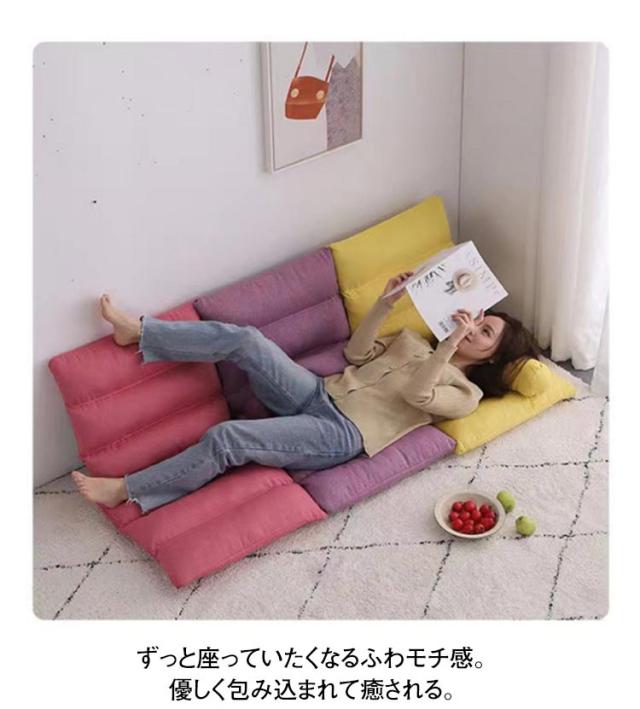 | 綿麻 5段階リクライニング 座面・背もたれともにボリュームがあるため、小さくてもしっかりとした座り心地が得られます。 ずっと座っていたくなるふわモチ感。 優しく包み込まれて癒される。 肉厚たっぷりボリューム! ボリュームたっぷりの厚みでやさしく身体を受け止めます。 | |