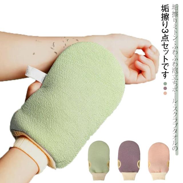 3点セット 垢すり 垢擦り あかすり グローブ タオル 泡立てネット スポンジ 背中 ピーリング ボディケア 敏感肌 角栓 角質 角質ケア 美肌 潤い 艶肌 黒ずみケア 毛穴 除去 痒み 足 お尻 保湿 ツルツル肌 ビジネス カジュアル 役立つ 父の日 母の日 送料無料