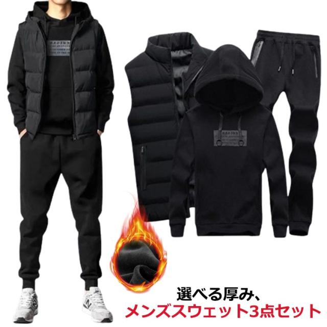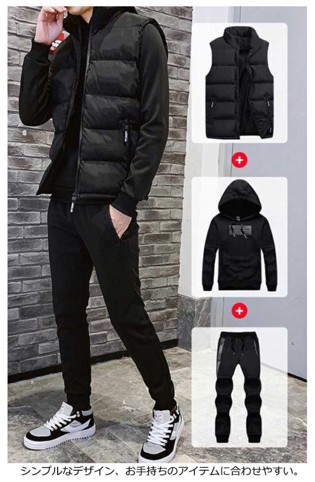 パーカー 暖かい ベスト スウェットセットアップ パンツ 秋冬 ジップアップ 中綿ベスト 裏起毛 ベスト 上下セット 長袖 セットアップ ボア メンズ 3点セット カジュアル フード付き シンプル 大きいサイズ 無地 紳士服 スポーツウエア プレゼント ギフト
