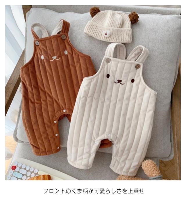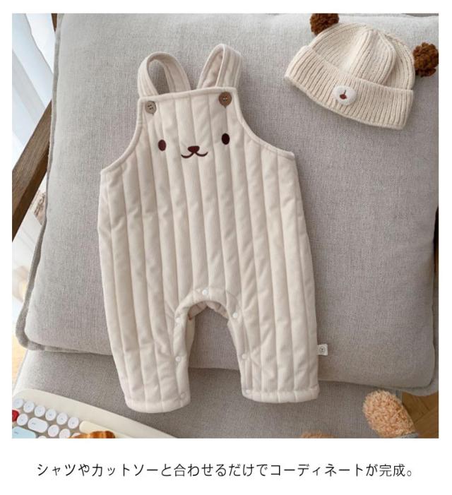 オーバーオール 裏ボア 子供服 裏起毛 サロペット くま オールインワン 赤ちゃん つなぎ ベビー かわいい あったか 防寒 キルティング ロングパンツ おしゃれ ベビー服 女の子 キルト こども服 可愛い 男の子 しっぽ ポンポン 春 秋 冬 出産祝い 66 73 80 90