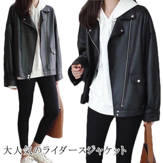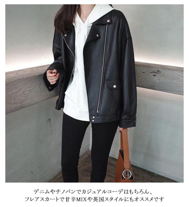 大人 レザージャケット 革ジャン ダブル レディース ブルゾン フェイクレザー コート 秋冬 大人 バイクジャケット 大きいサイズ 革ジャン ライダース 合皮 フェイク ミドル丈 ライトアウター ゆったり おしゃれ ライダースジャケット