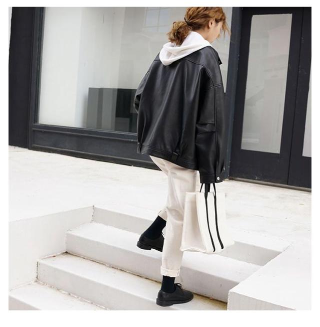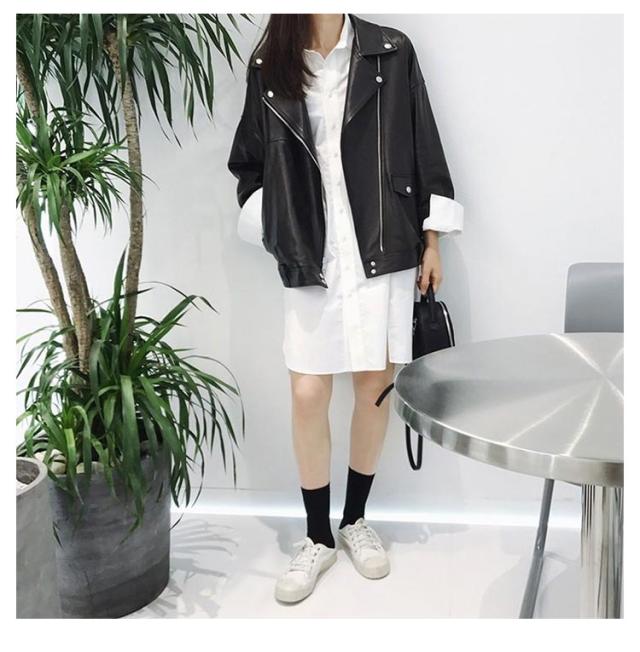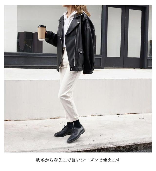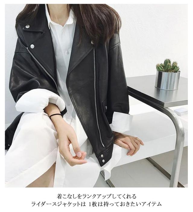 | 大人気のライダースジャケット ほどよい艶としっとりした質感で品格のあるフェイクレザーを使った ダブルデザインです デニムやチノパンでカジュアルコーデはもちろん、 フレアスカートで甘辛MIXや英国スタイルにもオススメです 着こなしをランクアップしてくれるライダースジャケットは 1枚は持っておきたいアイテム 秋冬から春先まで長いシーズンで使えます | |