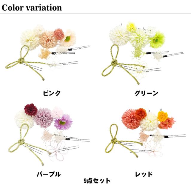 | 【髪飾り9点セット】【4color】【成人式・卒業式などに】 さりげないヘアアレンジが、和装のオシャレに差をつけます。 髪飾りは顔に一番近い部分の装飾品なので、とても重要なアクセサリーです◎ お召しになる浴衣の柄や、小物の雰囲気にあわせてお選びいただけると着こなしがまとまります。 他の髪飾りとの相性もいいので、合わせて付けて頂くとまた、違った雰囲気が楽しめますよ♪ 卒業式袴や七五三着物におすすめの和装髪飾り。 浴衣コーデや、結婚式や成人式の着物や振袖に合わせて大人も子供も使えます。 | |