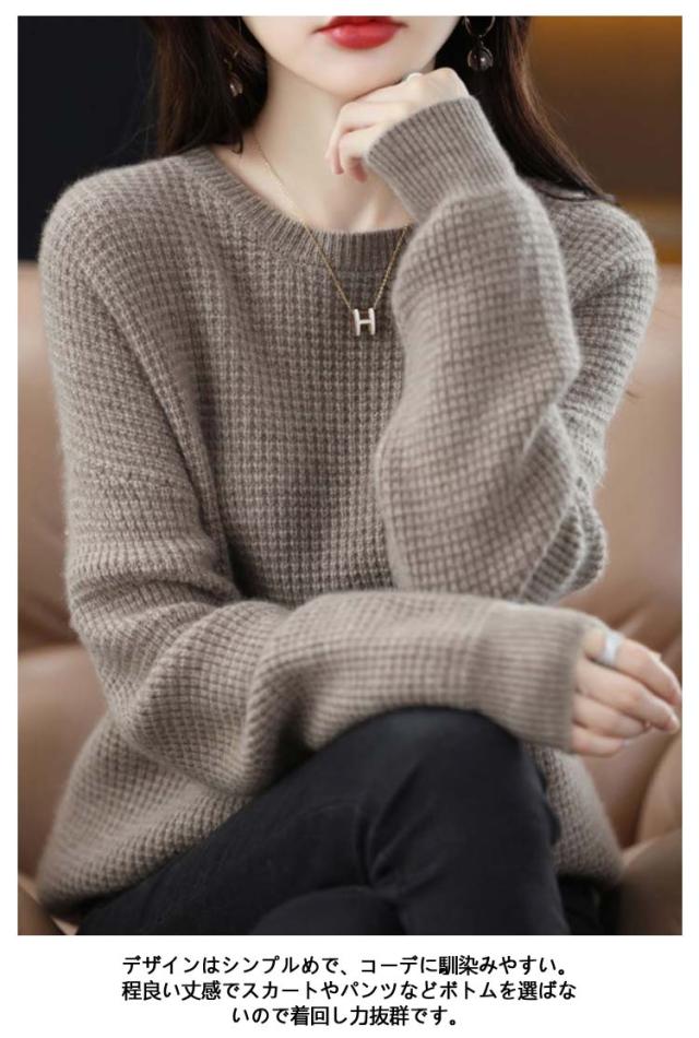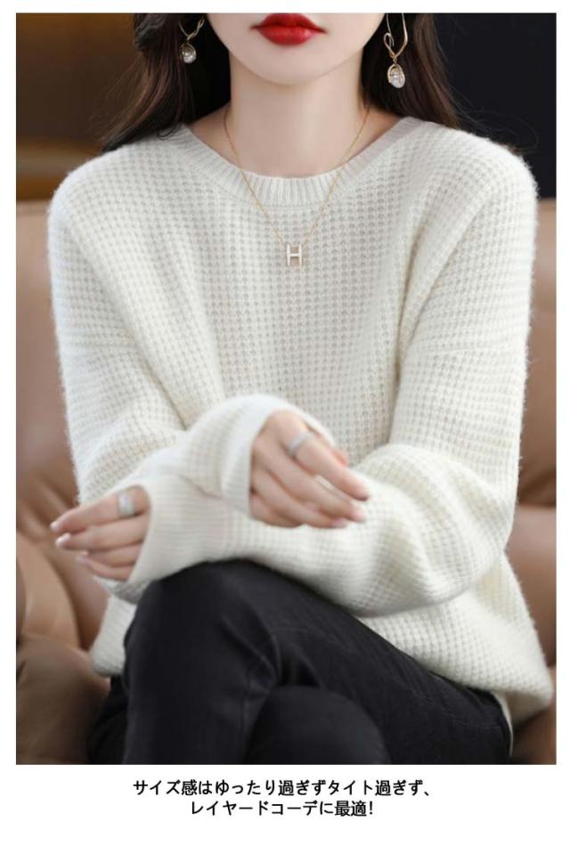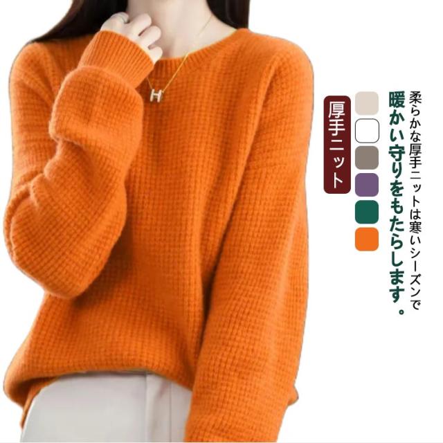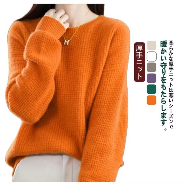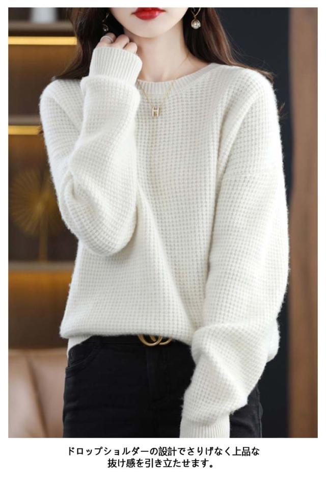 ワッフル 長袖 ニット セーター ニット 厚手ニット レディース 暖かい 冬 秋 セーター ドロップショルダー クルーネック ニットトップス 厚手 畦編みニット ざっくり 無地 シンプル カジュアル あたたかい おしゃれ 通勤