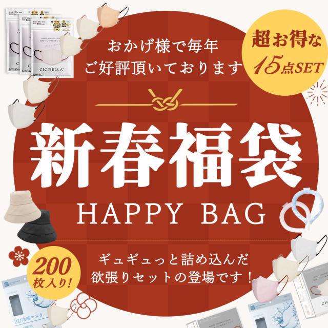 【新春福袋】「数量限定」 CICIBELLA大人気立体バイカラーマスク 福袋15点セット 血色マスク 不織布マスク 立体マスク 3Dマスク 人気アイテム入り