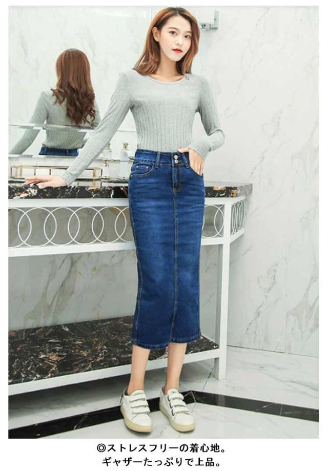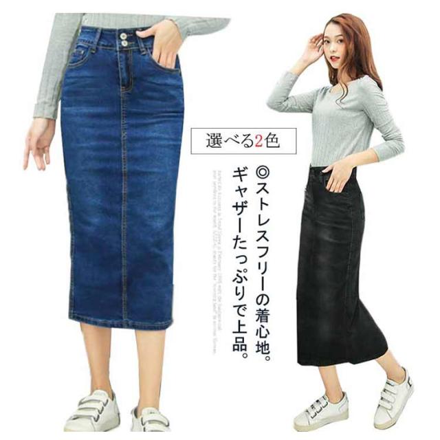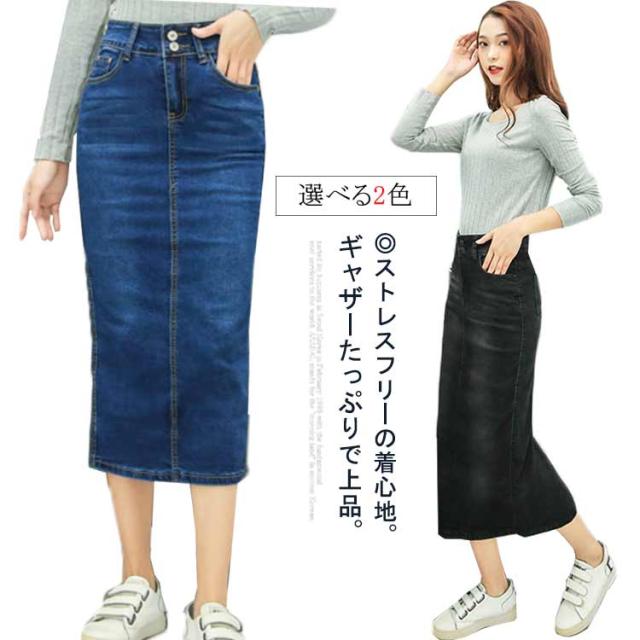 ミモレ丈 レディース ロングスカート デニムスカート 春 ひざ下 はきやすい 動きやすい スカート 体型カバー ストレッチ 伸びる デニムスカート きれいめ 歩きやすい ロング丈 ストレッチ お洒落 秋 冬 ダンス ふんわり 膝下