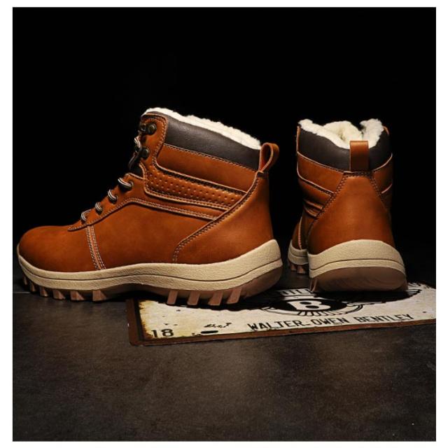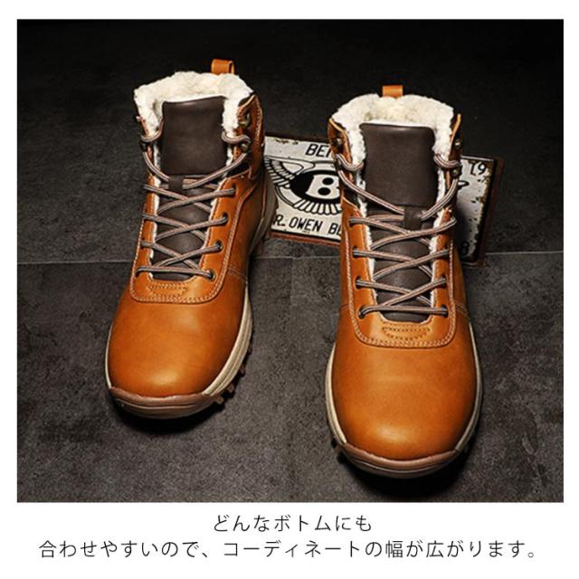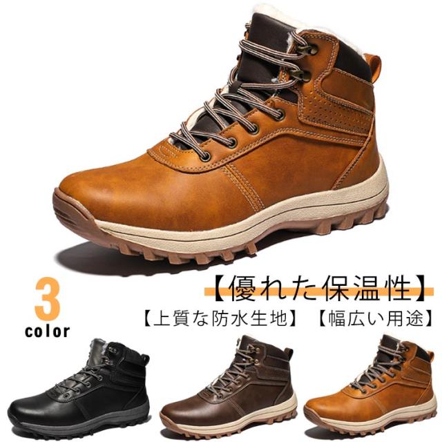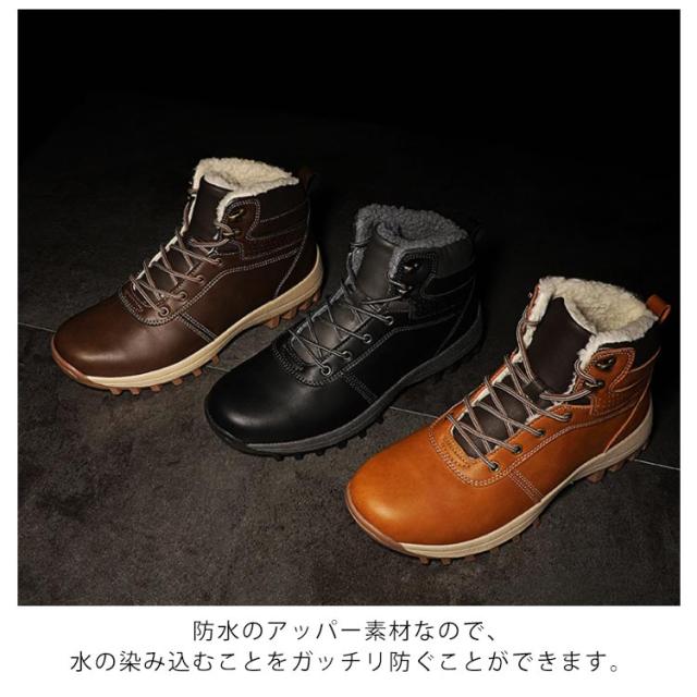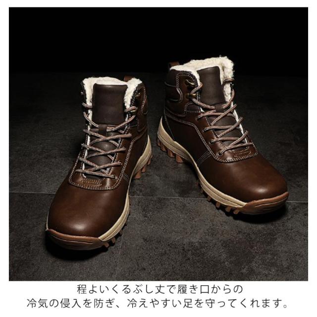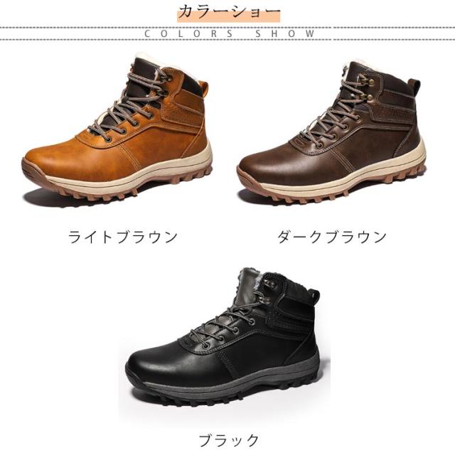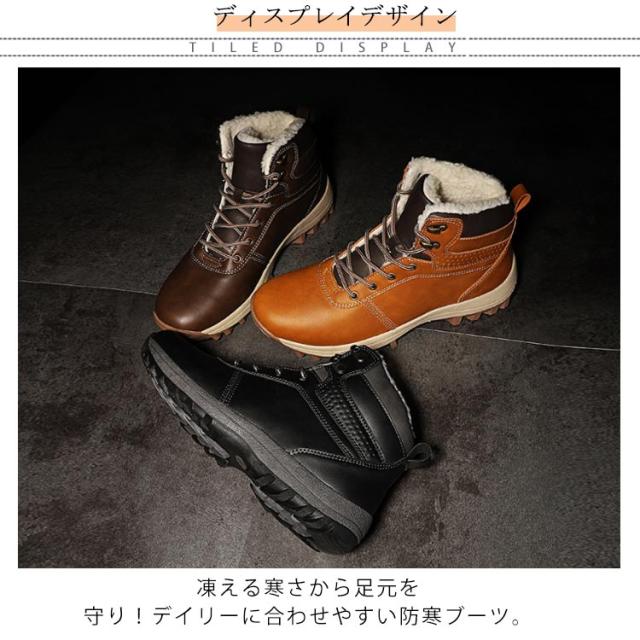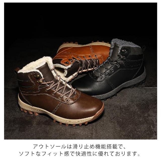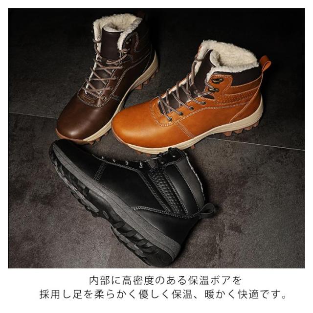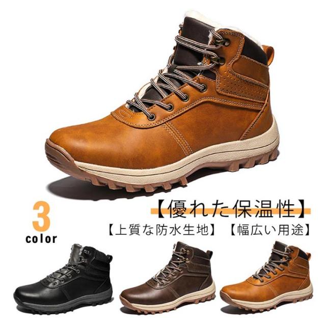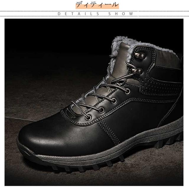 スノーブーツ PUレザー メンズ ショートブーツ スノーシューズ 裏ボア ワークブーツ レースアップ カジュアル 撥水 防寒 お洒落 保温 滑り止め 冬用 雪対応 アウトドア 通勤 通学 送料無料