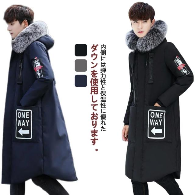 メンズ ダウンジャケット ダウンコート ジャンパー フード付き 大きいサイズ ファー付き ダウン コート ロング アウター 冬服 保温 ダウン ロング丈 ビジネスコート 厚手