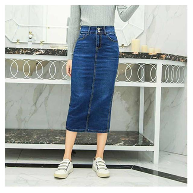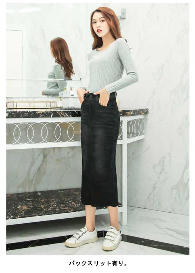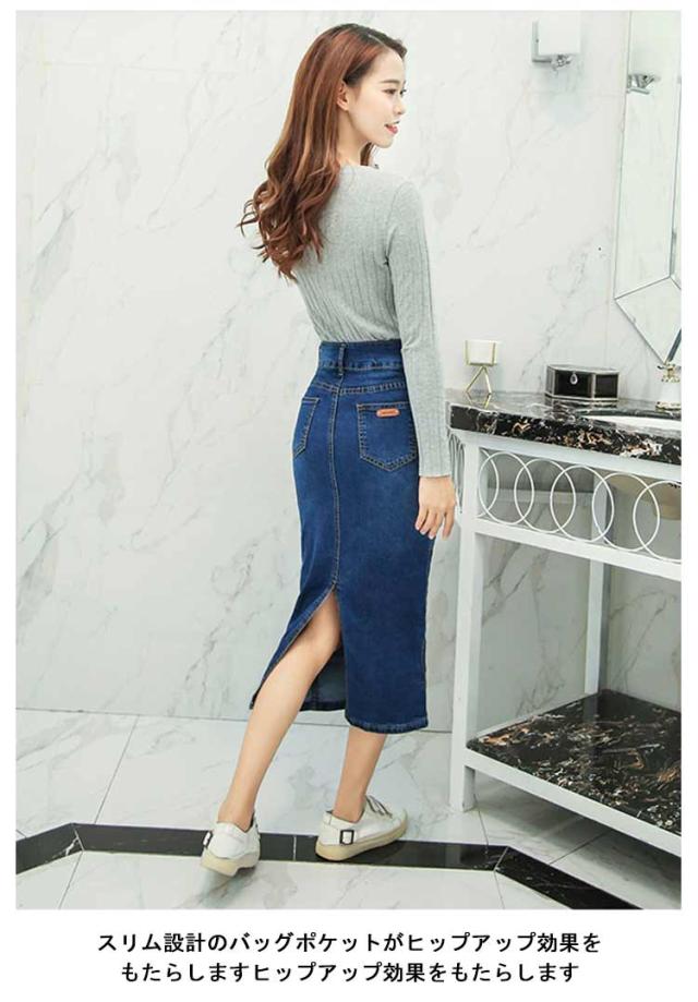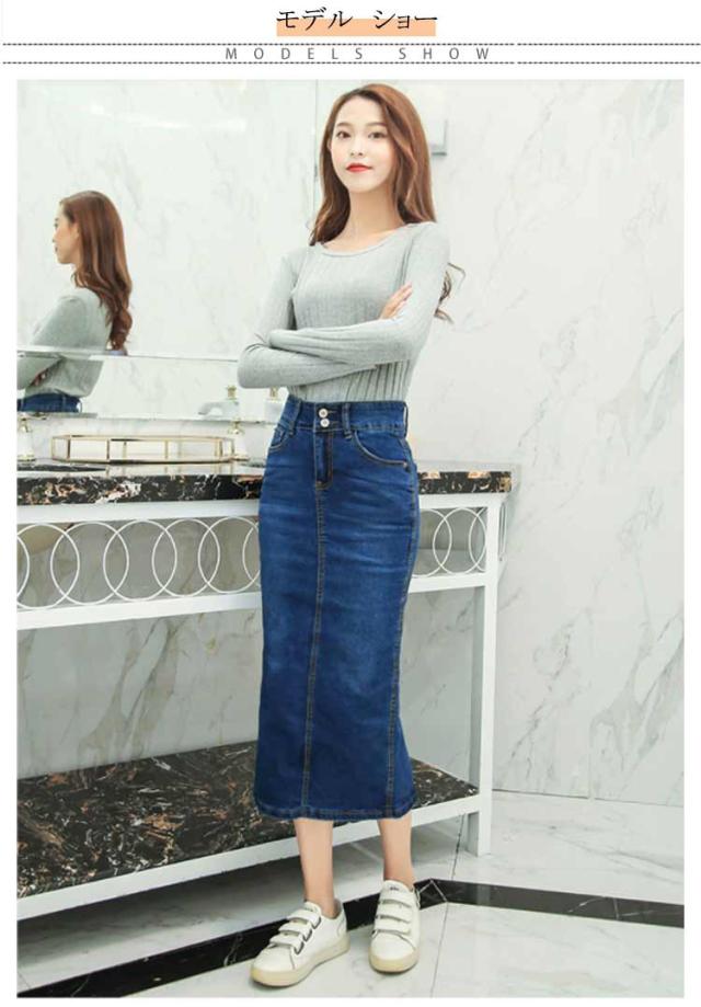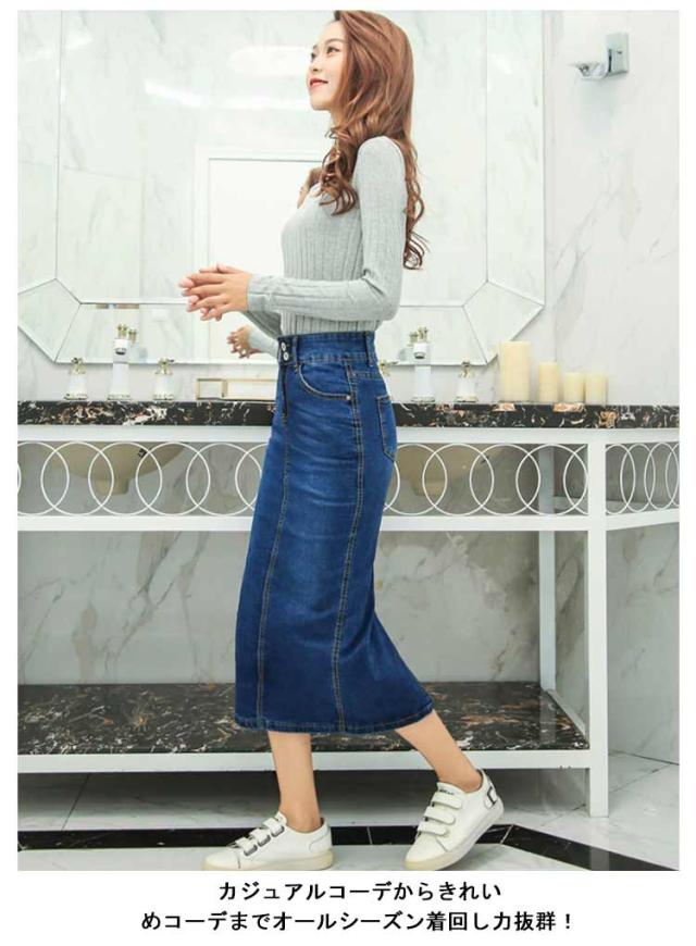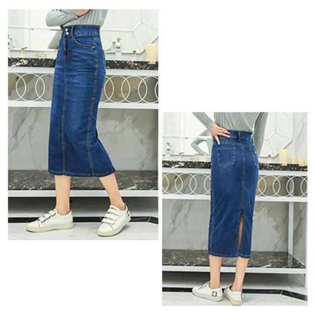 デニムスカート レディース スカート ミモレ丈 ひざ下 ロングスカート 体型カバー 動きやすい はきやすい 歩きやすい ストレッチ 伸びる お洒落 きれいめ スリット ロング丈 ストレッチ 春 秋 冬 ダンス ふんわり 膝下 コーデ