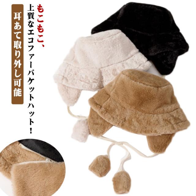バケットハット バケットハット 冬 ハット ファーバケットハット 帽子 耳あて付き 耳あて取り外し可能 フェイクファー 暖かい レディース ファーハット バケハ 短毛ファー ふわふわ 厚手 かわいい おしゃれ 保温 小顔効果