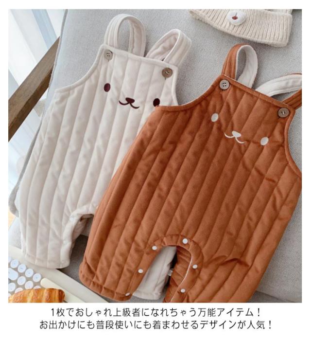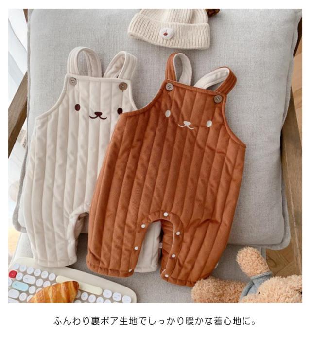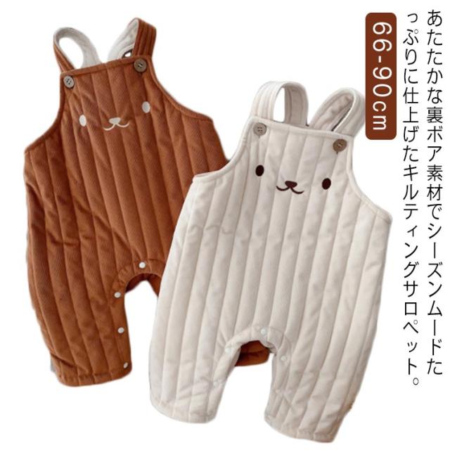 サロペット ベビー キルティング オーバーオール 裏ボア 裏起毛 オールインワン くま つなぎ キルト かわいい あったか 防寒 ベビー服 ロングパンツ 赤ちゃん 男の子 女の子 子供服 こども服 可愛い ポンポン しっぽ おしゃれ 春 秋 冬 出産祝い 66 73 80 90 送料無料
