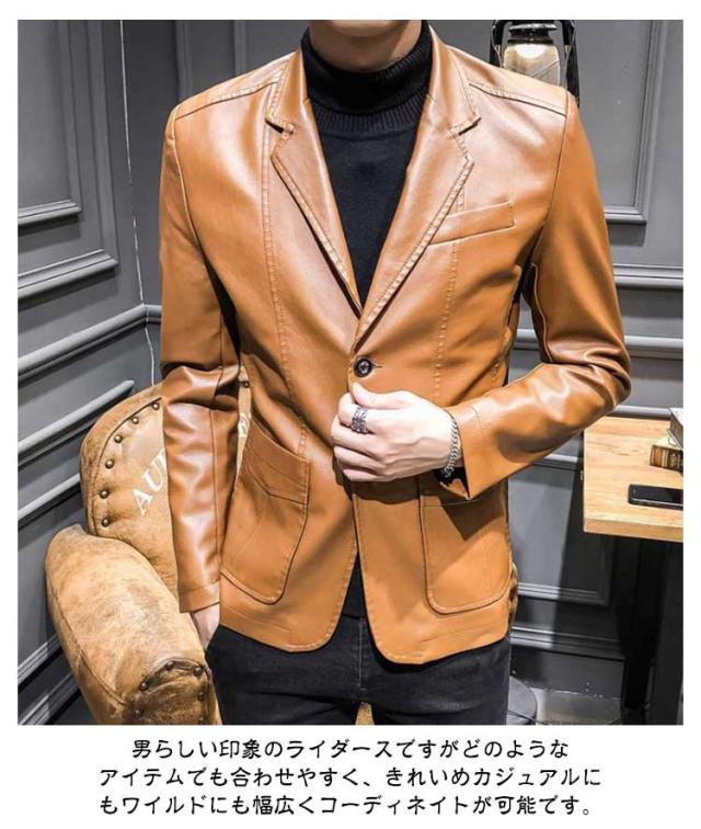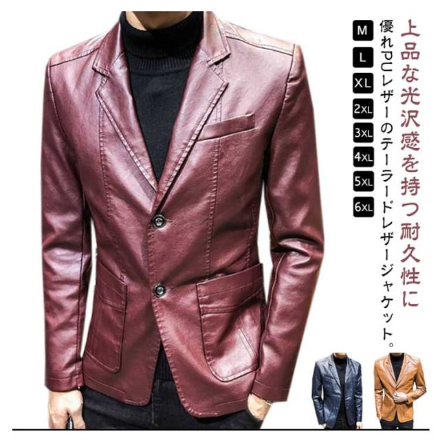 フォーマル メンズ レギュラーフィット メンズ テーラードジャケット PUレザート 革ジャン レザーテーラードジャケット ショート 防寒 ジャケット レザージャケット 皮ジャン ジャケット スーツコート アウター ブレザー ギフト