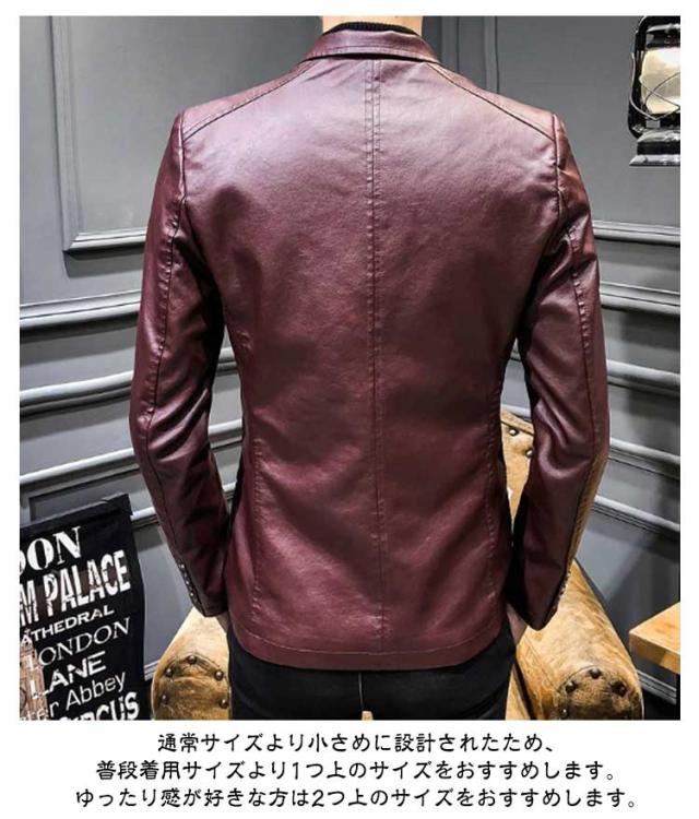 | 上品な光沢感を持つ耐久性に優れPUレザーのテーラードレザージャケット。 柔らかくて着心地抜群。気軽に着られる快適ジャケット。通気性を持ち、ムレにくいという特徴があります。 薄手&裏起毛の2タイプあり、適度な防風保温性と少しだけの撥水性も備えています。流行に左右されることなく長年使い続けられる定番アイテム。 日常、カジュアル、通勤通学にはピッタリ。作業にもお使い頂けます。旅行や登山、キャンプ、タウンユース等のアウトドア活動まで幅広く活躍するアウターです。 男らしい印象のライダースですがどのようなアイテムでも合わせやすく、きれいめカジュアルにもワイルドにも幅広くコーディネイトが可能です。 彼氏、お父さん、息子さんへのプレゼントに最適です。 たとえば、クリスマスプレゼントや誕生日プレゼントとして。 通常サイズより小さめに設計されたため、普段着用サイズより1つ上のサイズをおすすめします。ゆったり感が好きな方は2つ上のサイズをおすすめします。 | |
