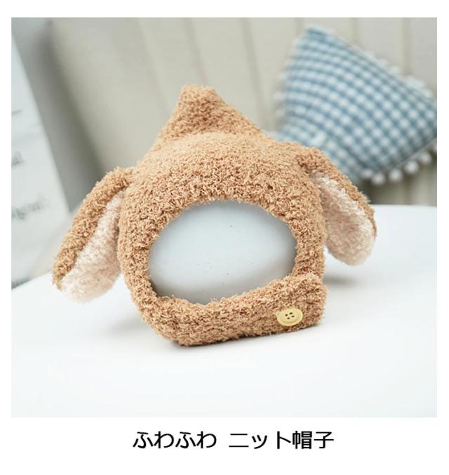 | ふわふわ ニット帽子 やさしい肌触りのボア生地を使用した、ふわもこの二ット帽です。 ロップイヤーのうさぎのようなたれ耳が付いていて、とってもキュート! かぶるとかわいい動物に大変身♪ あご部分をボタンで固定できるので、顔まわり・首まわりをしっかり包んで、寒い空気をシャットアウト! | |