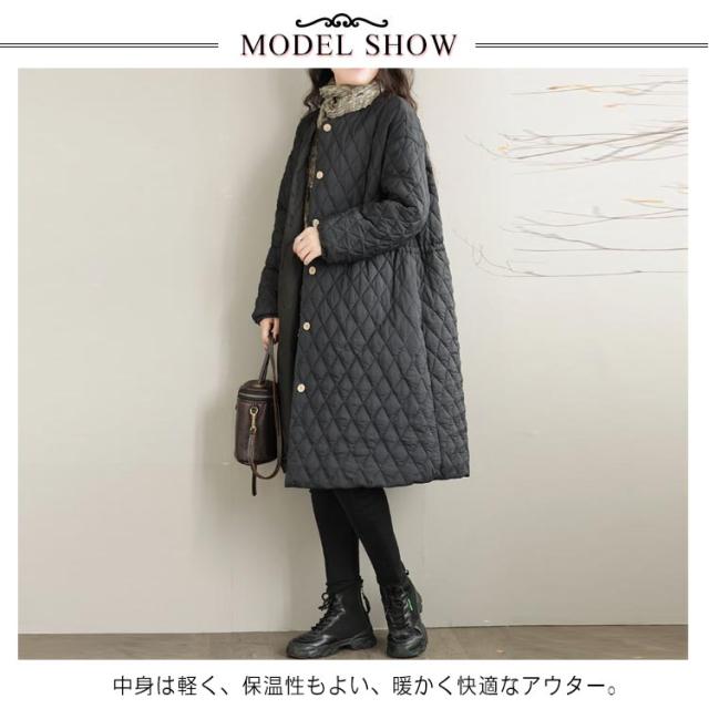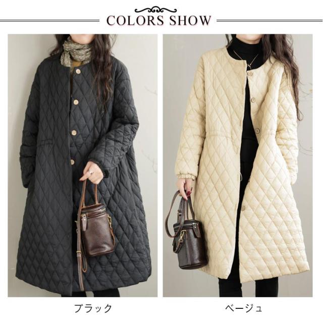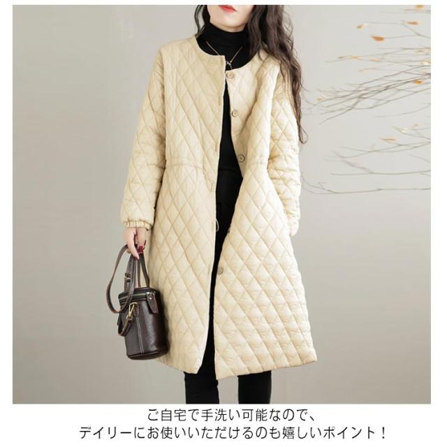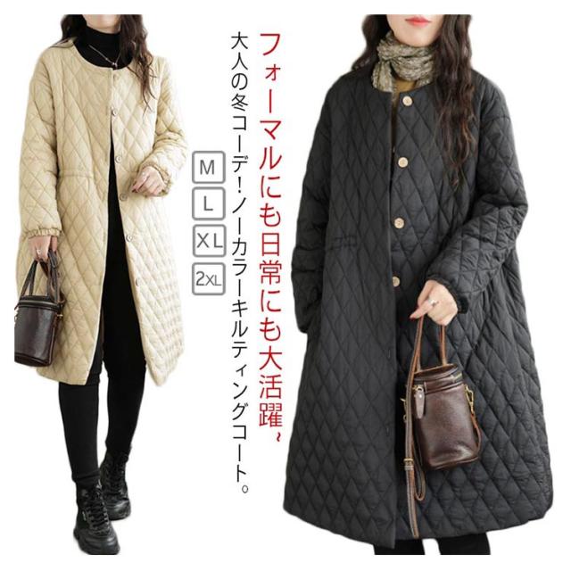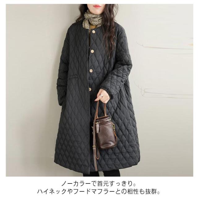 暖か 中綿ジャンパー コート キルティング アウター キルティングコート 中綿コート ノーカラー キルティングコート ロングコート ジャケット 秋冬 防寒 中綿 防寒コート きれいめ 軽 ゆったり 無地 ブルゾン カジュアル 着?せ 通勤 通学 デート ブラック