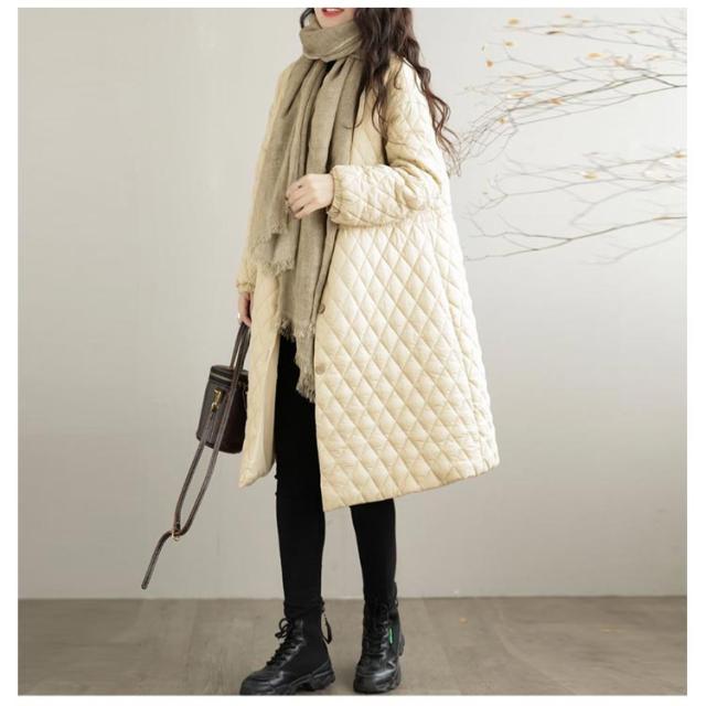 | フォーマルにも日常にも大活躍~大人の冬コーデ!ノーカラーキルティングコート。 中身は軽く、保温性もよい、暖かく快適なアウター。 ノーカラーで首元すっきり。ハイネックやフードマフラーとの相性も抜群。 ご自宅で手洗い可能なので、デイリーにお使いいただけるのも嬉しいポイント! | |