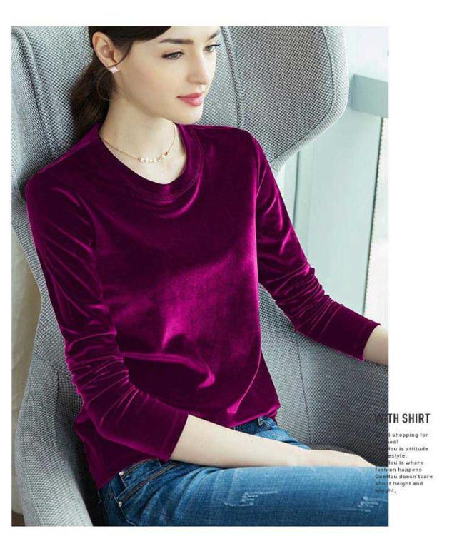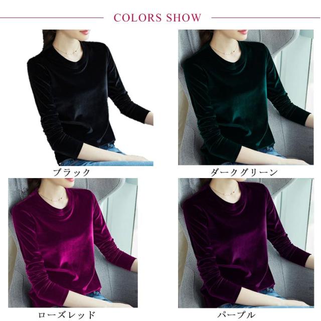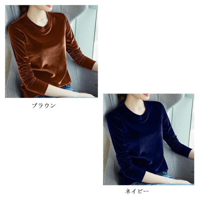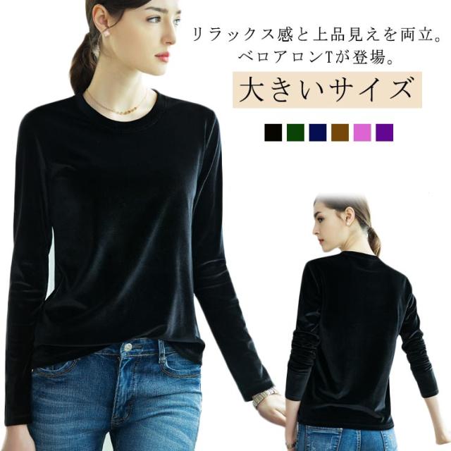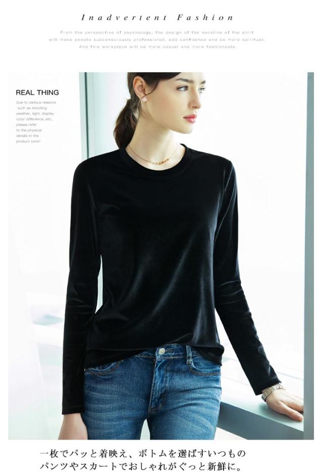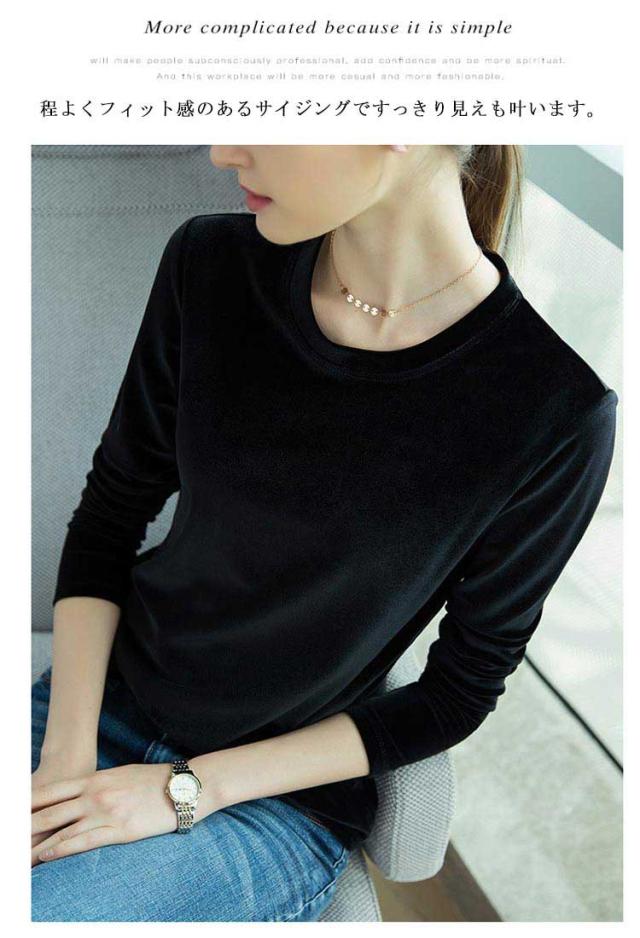Tシャツ きれいめ カットソー tシャツ レディース ストレッチ ベロア ベルベット クルーネック ベロア スリム 大きいサイズ 大人 通勤 オフィスカジュアル シンプル 無地 春 秋