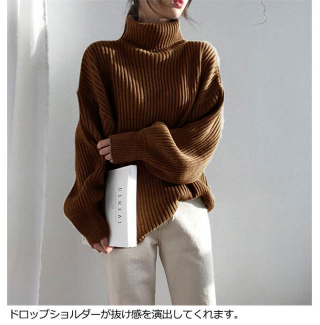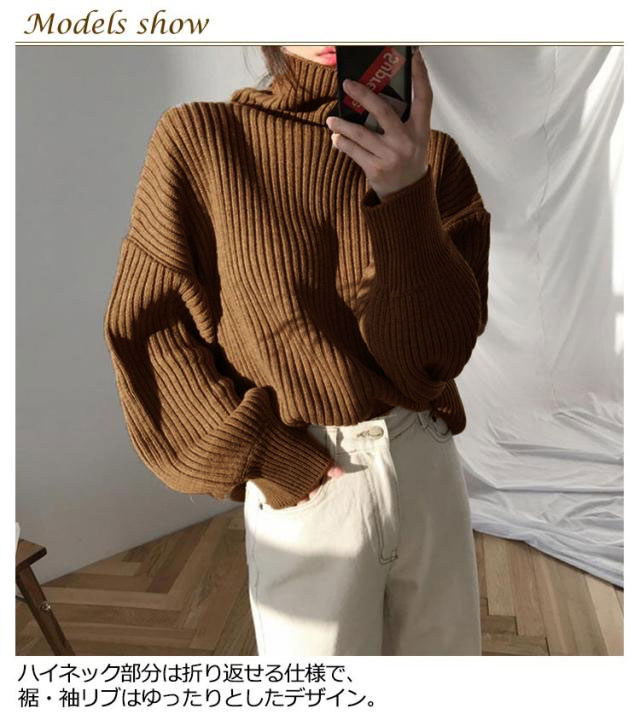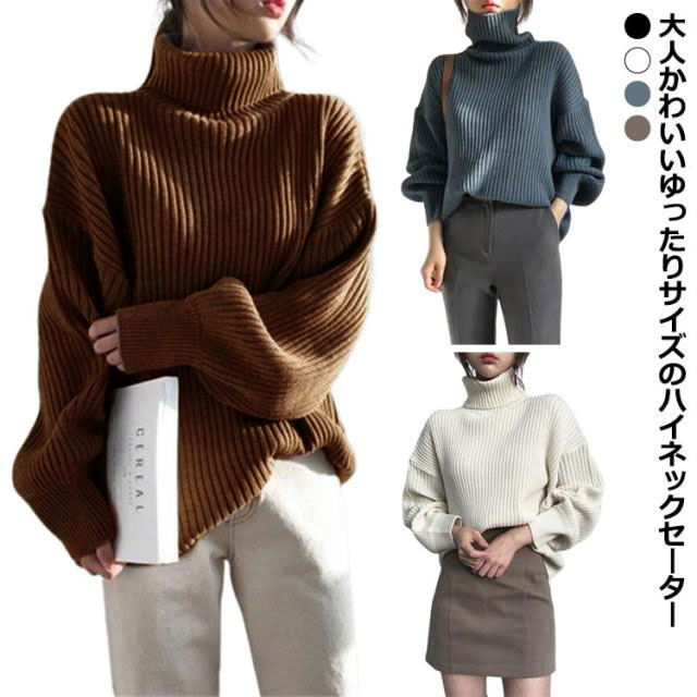 送料無料 タートルネック ニットセーター リブニット セーター プルオーバー 長袖 ハイネック バルーンスリーブ バルーン袖 ビッグシルエット ボトルネック シンプル 無地 ストレッチ あったか 秋冬 防寒 上品 エレガント 大人 かわいい