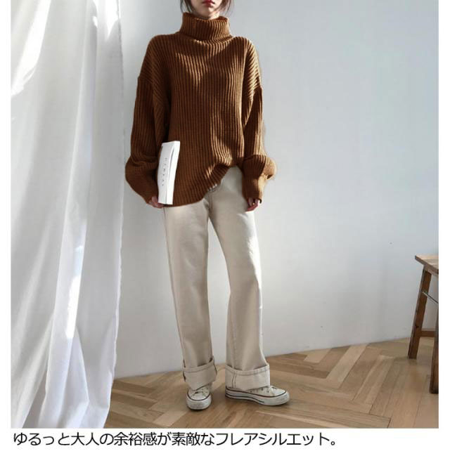 | ざっくり感が大人可愛いタートルニット。 首元をきちんと折り返すことで、ハイネックのように衿周りがシャープに見え大人っぽい雰囲気に♪ たっぷりしたサイズ感は体のラインを拾わず安心。 タートルネックですが重たくならず、こなれた印象にしてくれます。 腰回りやヒップをすっぽりカバーして、さりげない体型カバーもできる。 一枚での着用はもちろん、ワンピースに合わせたりしても上品に着こなせます。 カジュアルでも、キレイめでも・・・様々なシーンやスタイルに合わせて上手に着回しできる♪この秋冬のヘビロテ必至アイテム! | |
