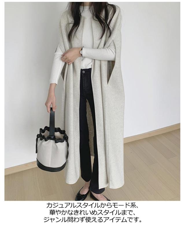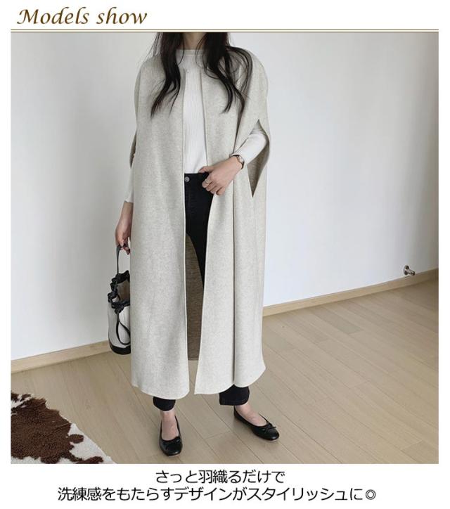 送料無料 ポンチョ風ジレ ロング ケープコート レディース ロングコート ケープ コート アウター ポンチョ ジレ ベスト トレンド 軽アウター ライトアウター 秋服 秋 オーバーサイズ 疲れない 軽い 着回し 大人