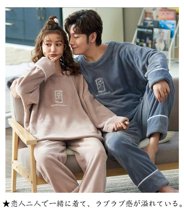 ペア パジャマ 秋冬 スウェット 上下 セット セットアップ もこもこ メンズ レディース パジャマ ペア プルオーバー マイクロファイバー 厚手 おしゃれ 部屋着 長袖 ペアルック ルームウェア 母の日 プレゼント 1着の価格