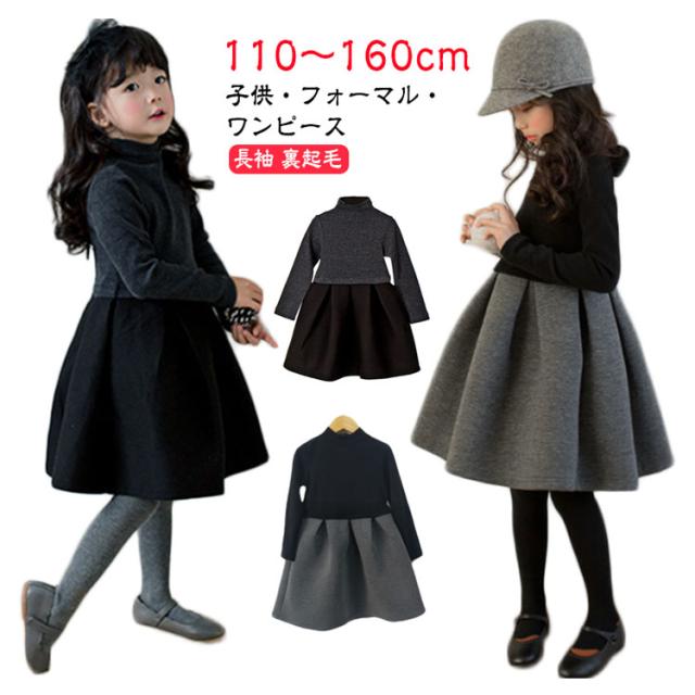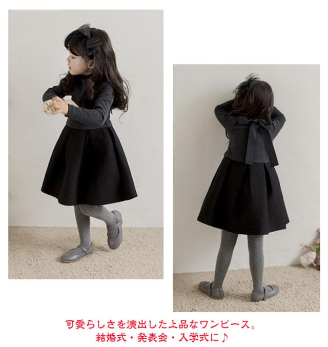 ワンピース 長袖 キッズ フォーマル 卒業式 ベビー バックリボン 子供服 黒 発表会 秋 冬 春 裏起毛 グレー 無地 女の子 結婚式 入学式 入園式 フォーマル 卒園式 子ども服 冠婚葬祭 プリンセス シンプル 韓国子供服 通園 通学 プレゼント