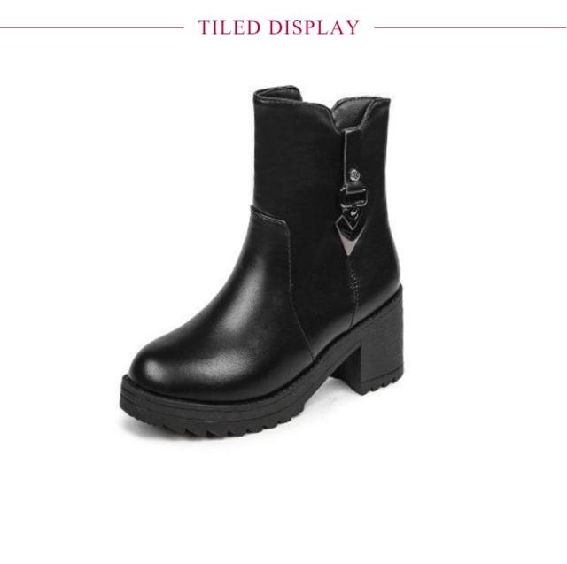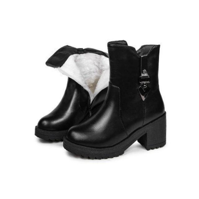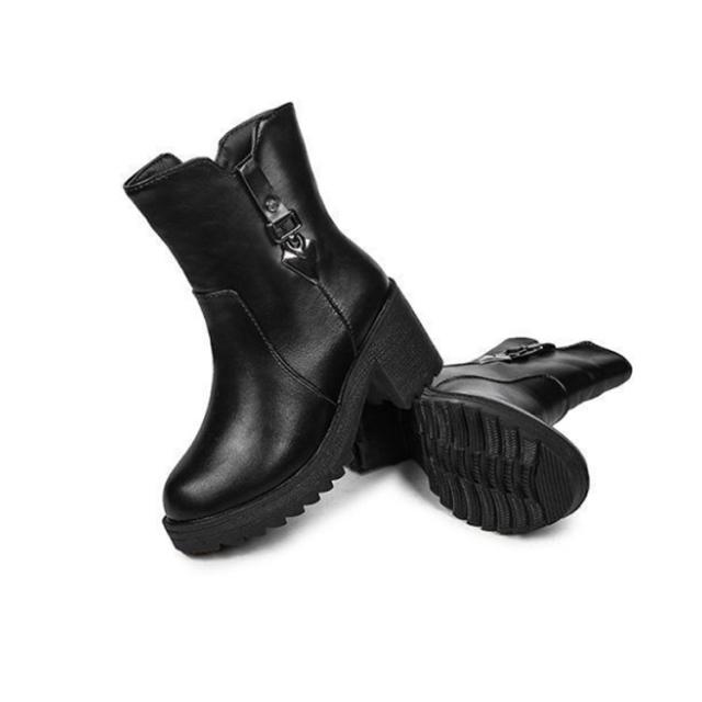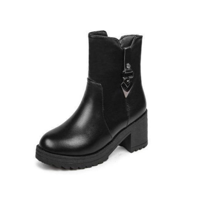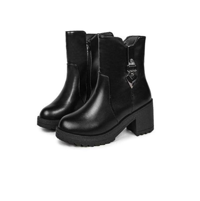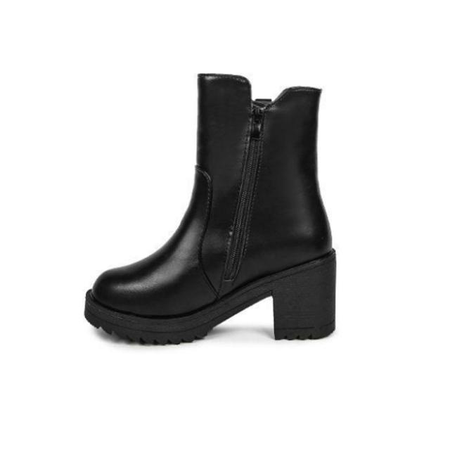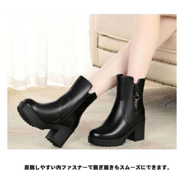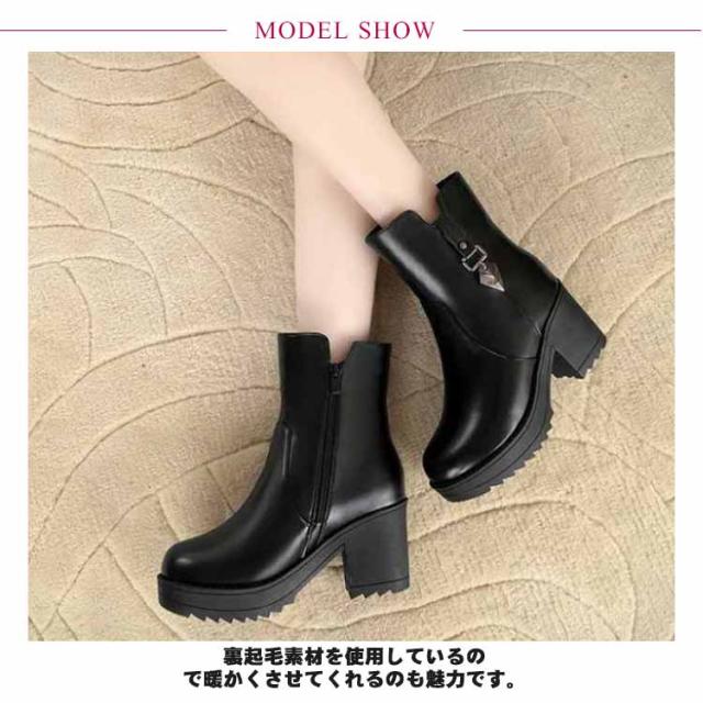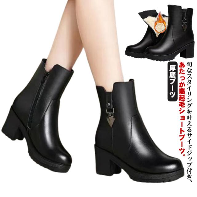 チャンキーヒール レディース 裏起毛 ショートブーツ ブーツ ファスナー ブーツ 7cmヒール 太ヒール 秋冬 暖かい サイドジップ あたっか 厚底ブーツ 防寒 ラウンドトゥ 歩きやすい 履きやすい シンプル 黒 大人 カジュアル 通学 通勤