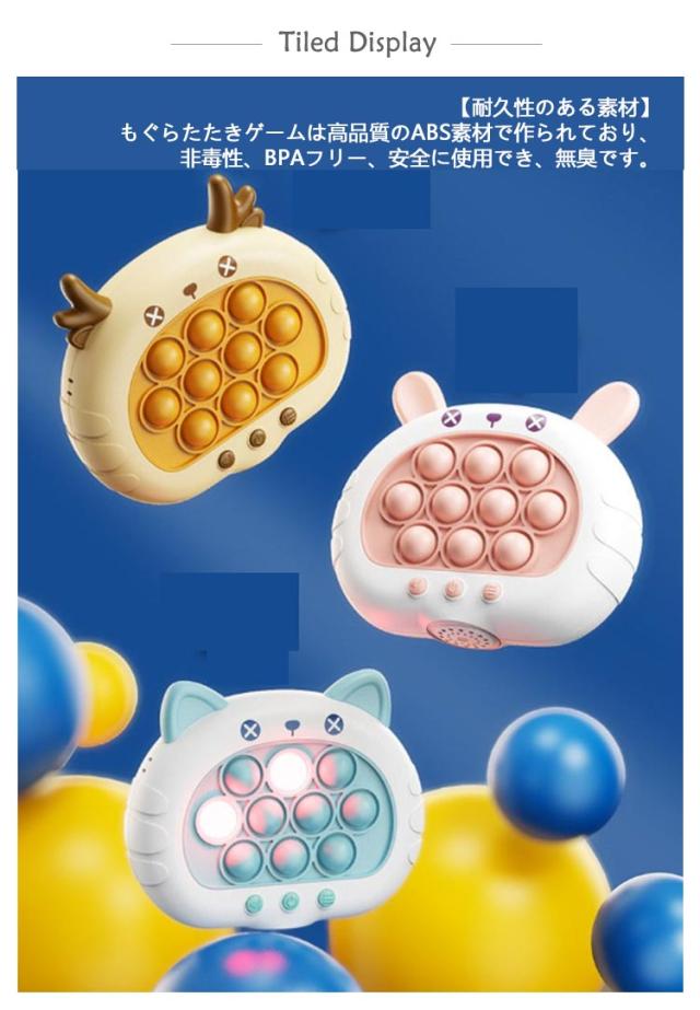 | 電子もぐらたたき プッシュポップ 【耐久性のある素材】もぐらたたきゲームは高品質のABS素材で作られており、非毒性、BPAフリー、安全に使用でき、無臭です。また、柔軟性と柔らかさに優れており、快適で滑らかなタッチをもたらします。 【モード】4 つのゲームプレイ モードにより、より楽しく、反射神経を鍛えることができます。 【操作能力の開発】ハンズオン スキルを向上させるパズル ポップ ライトアップ ゲームは、ブレイクアウト ゲームを通じて子供たちの興味を刺激し、子供たちを探索活動に集中させます。 【リラックス感覚ゲーム】電子ポップライトアップゲームは気分をリラックスさせるのに役立ち、必要に応じて難易度を調整でき、子供の忍耐力を養います。 【人気のゲーム機は】子供のパーティー、大人の会議、日常の仕事や生活など、さまざまなシナリオに適しており、一般の人々に適した幅広い人々に適用されます。 【ご注意】乾電池 利用必要です。(電池は付きません、別途でご購入ください。) | |
