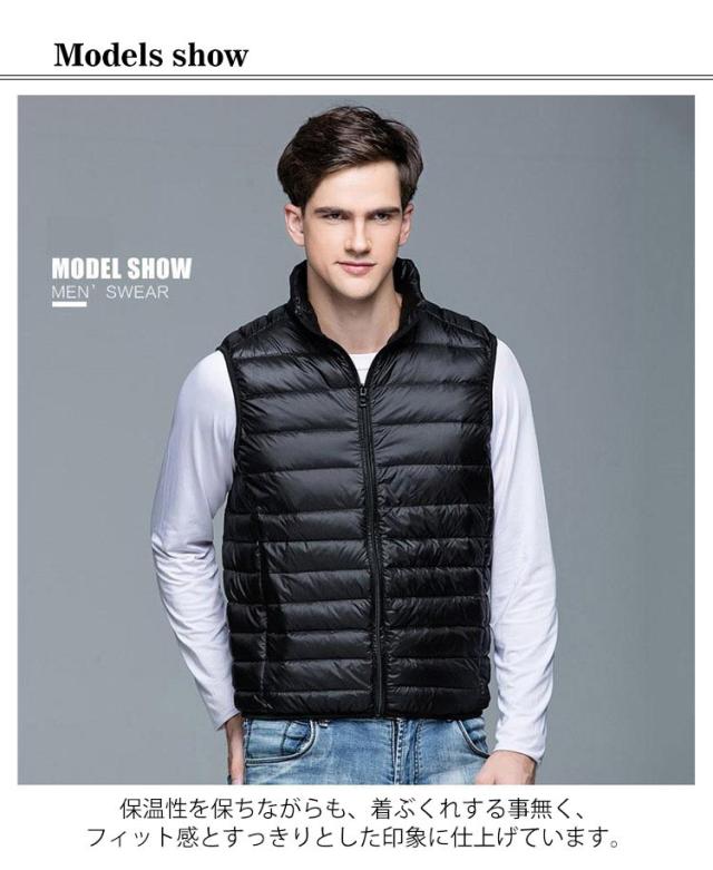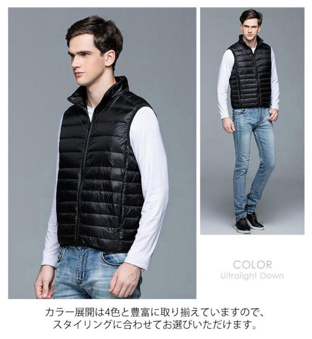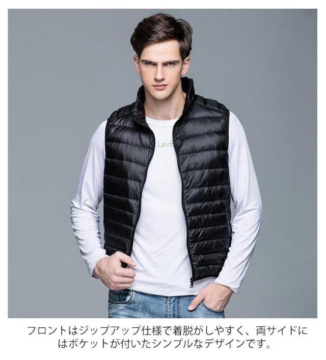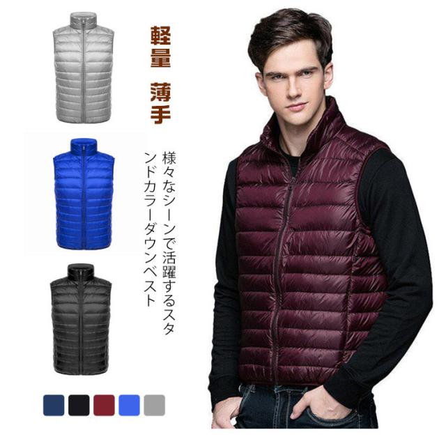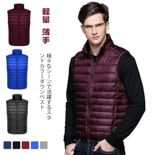 ダウンベスト メンズ インナーダウンベスト メンズ 立ち襟 スタンドカラー インナーベスト ポケット付き ショート スリム ファスナー 軽量 薄手 秋冬 防寒 保温 あったか 大きいサイズ 【送料無料】