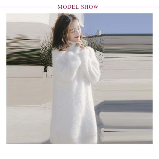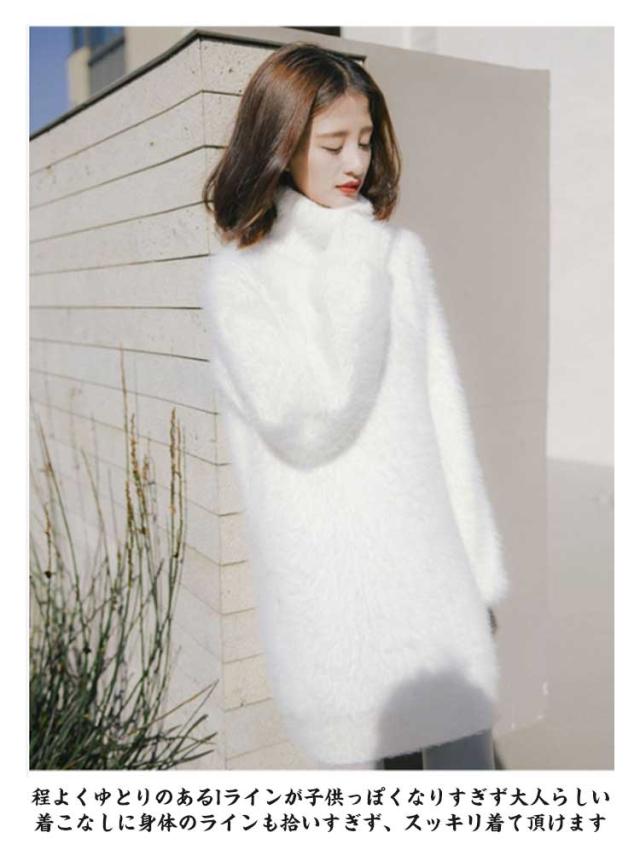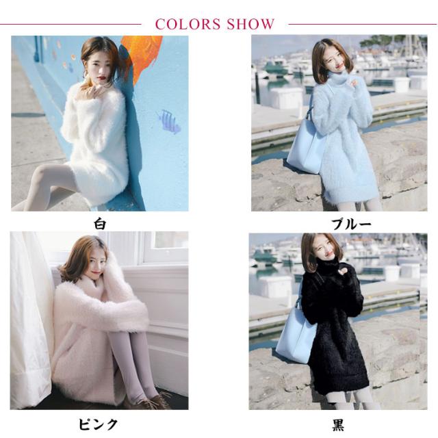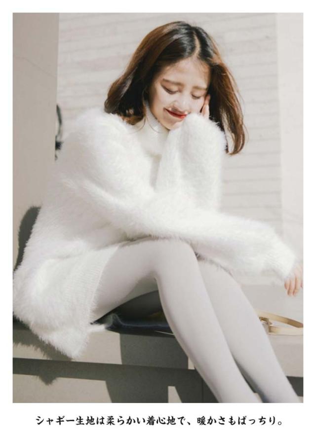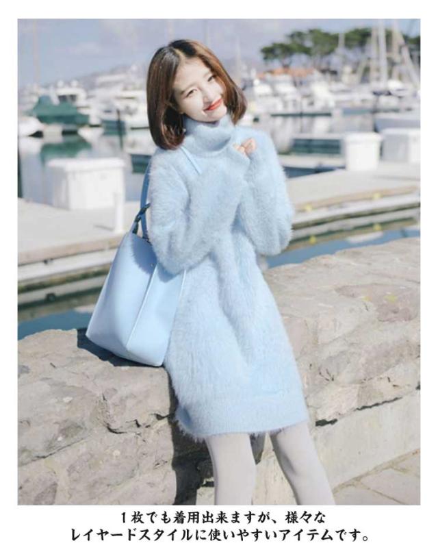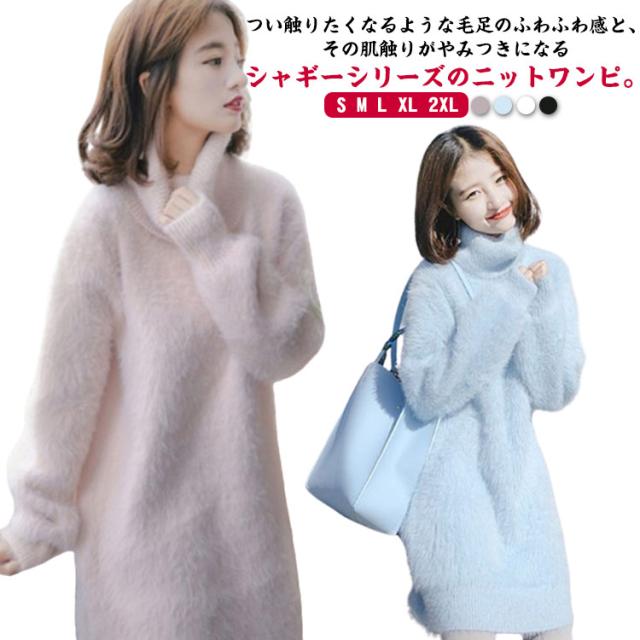 シャギーニット ワンピース チュニック ニットワンピース ふわふわ タートルネック ボリュームスリーブ ボリューム袖 シャギーニット シャギーニット レディース ハイネック 秋冬 もこもこ あたっか 大人 可愛い きれいめ ゆったり 着痩せ 無地 シンプル