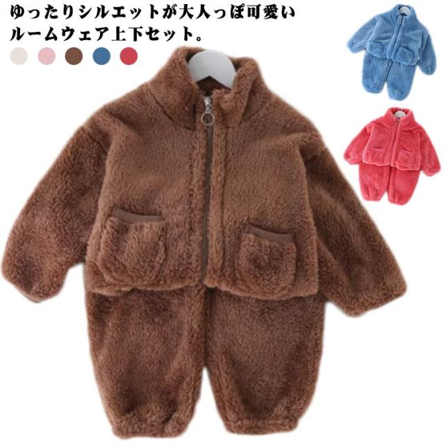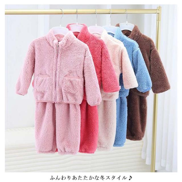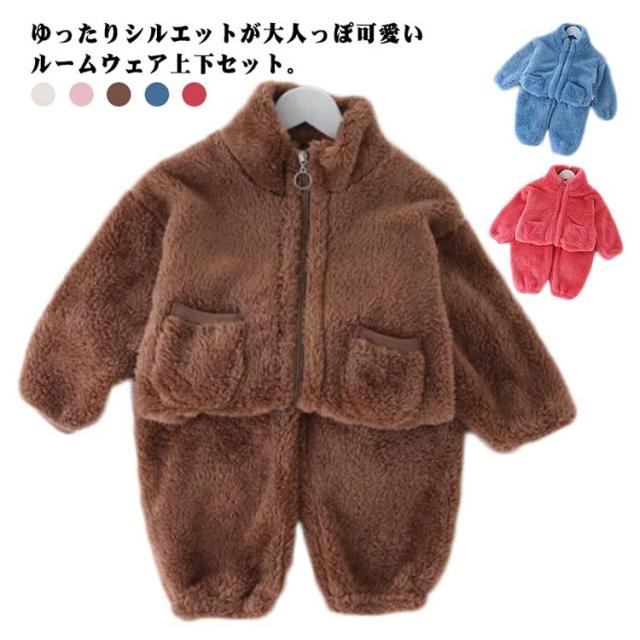 もこもこ ルームウエア 上下セット 子供 パジャマ 部屋着 立ち襟 女の子 男の子 秋冬 暖かい 90 100 110 120 130 140 150 160