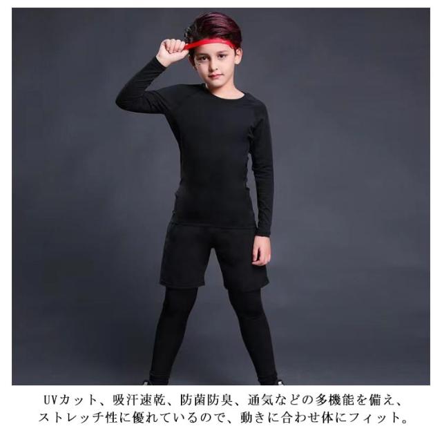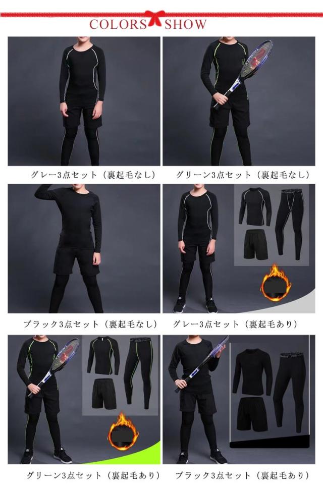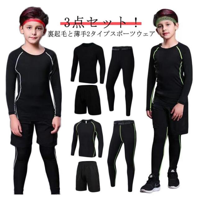 コンプレッションウェア キッズ ジュニア 3点セット!裏起毛と薄手2タイプ 上下セット アンダーウェア サッカー セットアップ 吸汗 運動着 ストレッチ スポーツ 速乾 男の子 女の子 防寒 スポーツ インナーシャツ 長袖