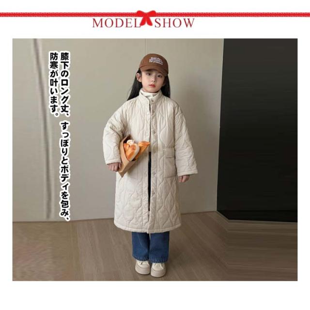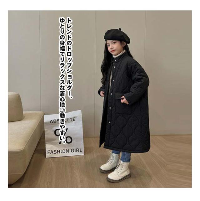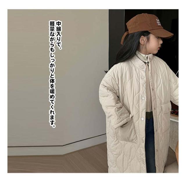 ロングコート キルティングコート キルティングジャケット 140 ジュニア 110 羽織り 120 130 100 150 スタンドカラー 中綿コート 女の子 キッズ アウター 軽い ゆったり 高学年 男の子 子供服 キルティングコート 暖かい 防寒 冬服
