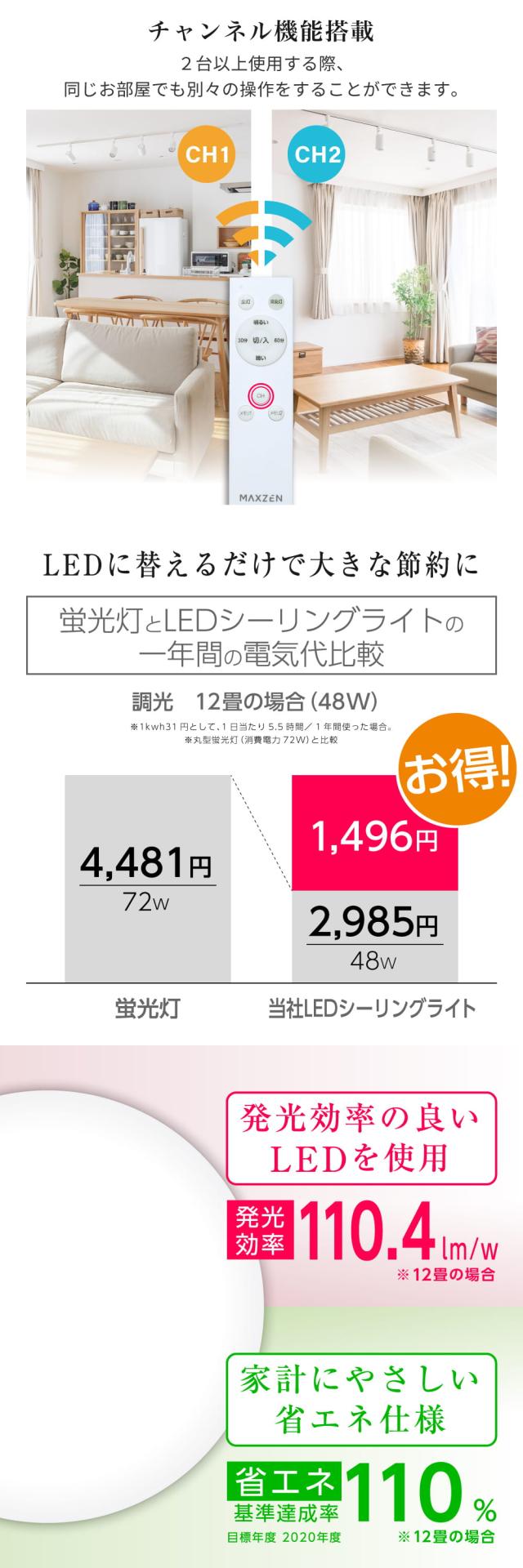 【期間限定ポイント5倍 2/26 10時まで】 シーリングライト 12畳 調光 LEDライト 常夜灯 照明 天井照明 長寿命 明るい 節電 リモコン タイマー機能 メモリ機能 取付簡単 玄関 寝室 和室 キッチン おしゃれ リビング MCD12LT01 マクスゼン
