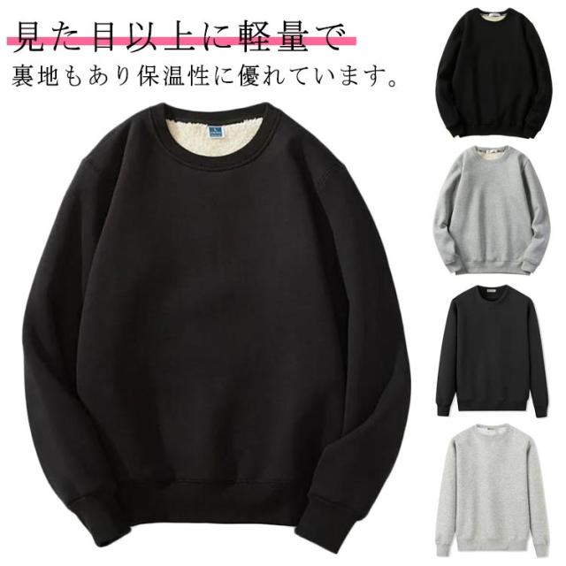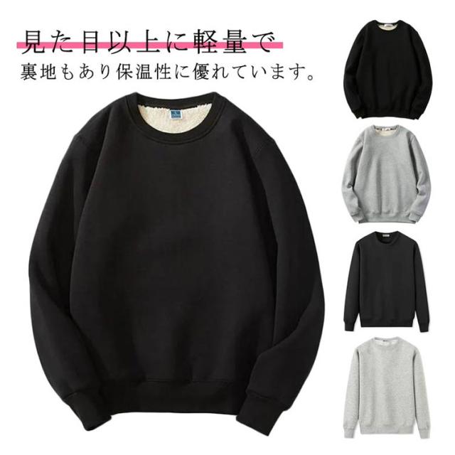 クルーネック 厚手 メンズ 裏起毛 トレーナー あったか カジュアル レディース トップス 無地 長袖 パーカー スウェットプルオーバー ゆったり 春 秋冬 裏ボア