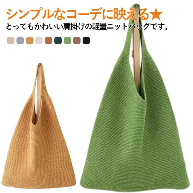| シンプルなコーデに映える★とってもかわいい肩掛けの軽量ニットバッグです。 ちょっとしたお出かけやサブバッグ・エコバッグとしても◎ A4サイズが楽々入る大きさなので、レッスンバッグとしてもおススメです。 カラーバリエーションが豊富で、冬には暖かみのある色合いで、夏には明るいカラーで爽やかなコーディネートを楽しめます。 編み目の細かさや厚みが適度なため、軽量で持ち運びやすく、使い勝手がよく1年中使える。 デイリーユースはもちろん、お出かけや旅行にも重宝するアイテム。 ポリエステル素材で耐久性があり、お洗濯も可能! | |