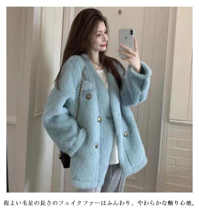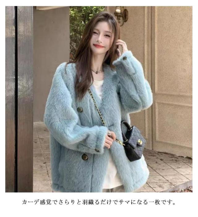 フェイクファーコート ノーカラー カーディガン レディース ファーコート Vネック ボアコート もこもこ アウター コート ゆったり かわいい 秋