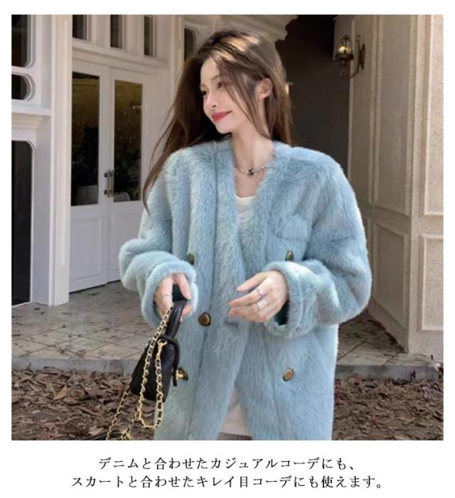 | 秋冬に活躍してくれる暖かなフェイクファーコート。 すっきりとしたノーカラーデザインはハイネックのニットが映えます。 程よい毛足の長さのフェイクファーはふんわり、やわらかな触り心地。 カーデ感覚でさらりと羽織るだけでサマになる一枚です。 デニムと合わせたカジュアルコーデにも、スカートと合わせたキレイ目コーデにも使えます。 | |