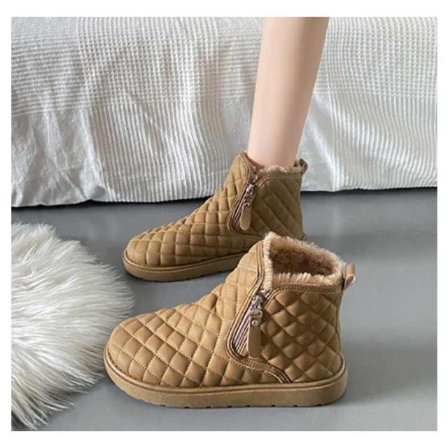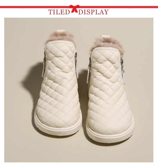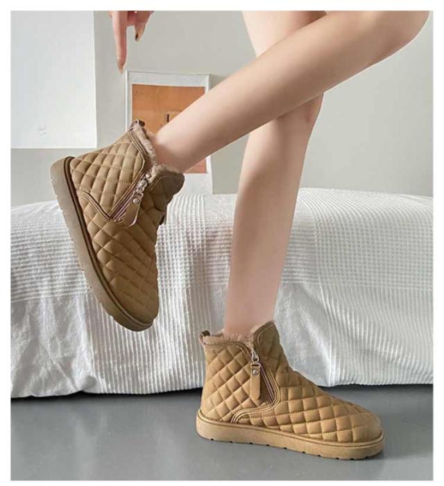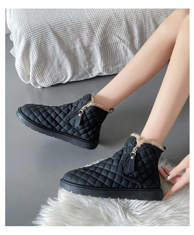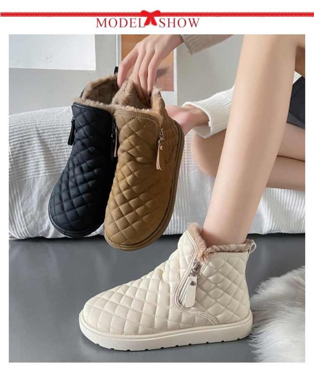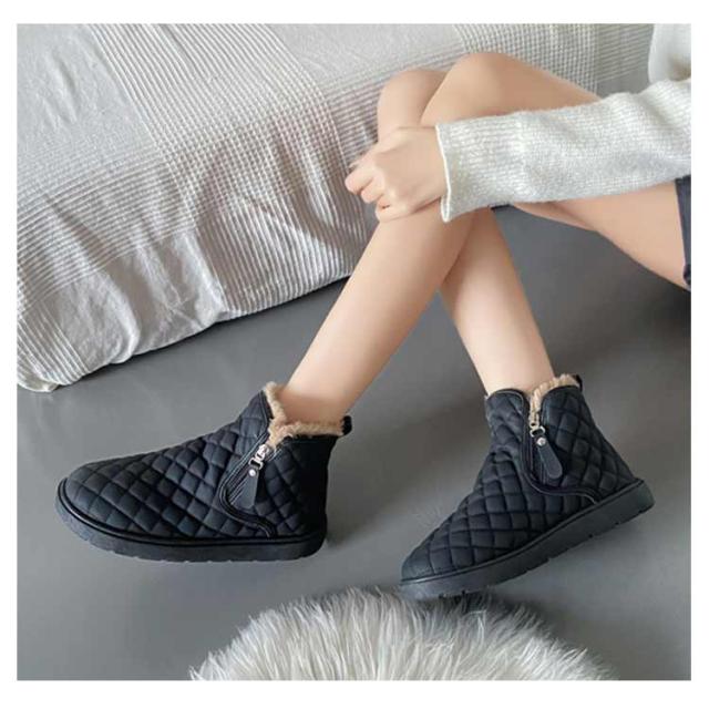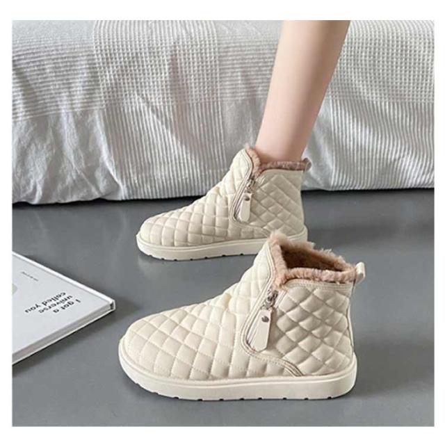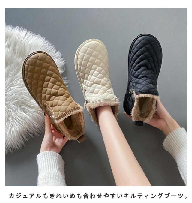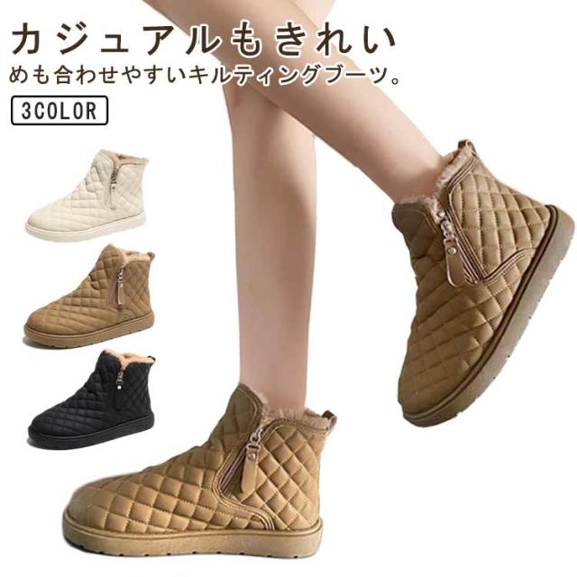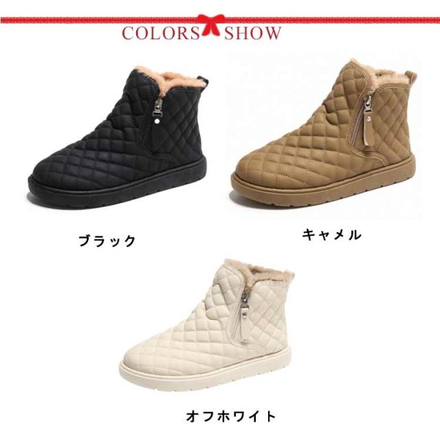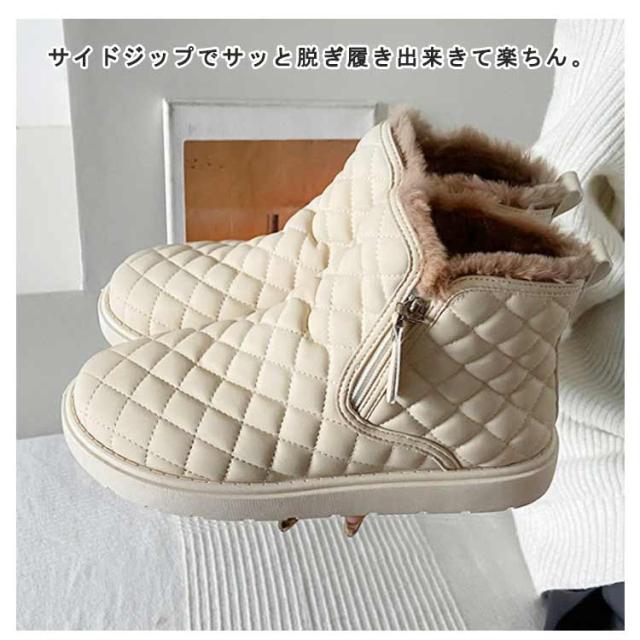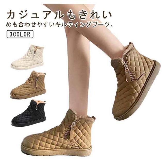 防滑 キルティング ブーツ シューズ 裏ボア レディース ショートブーツ あったかボアブーツ ムートンブーツ ムートンブーツ スノーシューズ 防寒 ウインターブーツ 雪靴 オシャレ 22.5-25CM