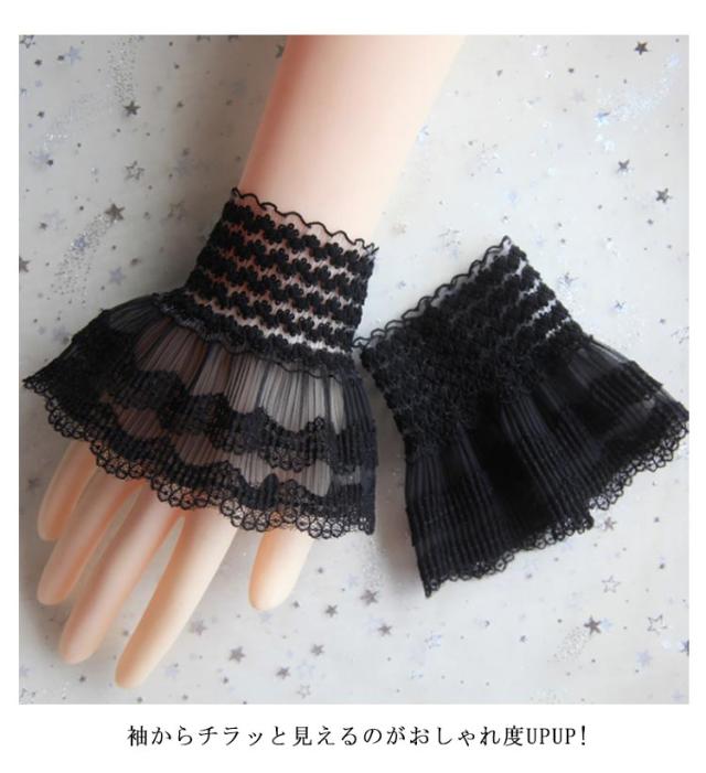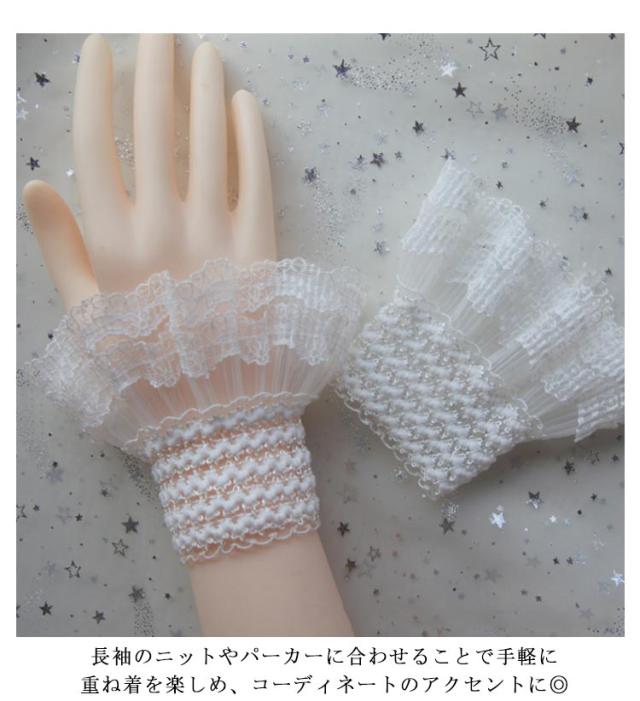 シースルー つけ袖 可愛い フレア袖 レース レイヤード風 プリーツ フリル つけ袖 付け袖 上品 袖口 フリル袖 レイヤード風 フレアスリーブ レディース レース袖 シースルー 透け感 重ね着風 エレガント コスプレ ロリータ フェミニン 甘辛 姫系 ファッション小物